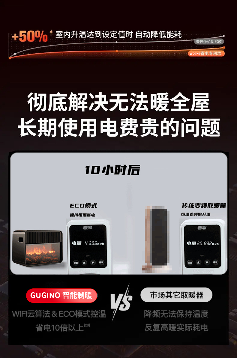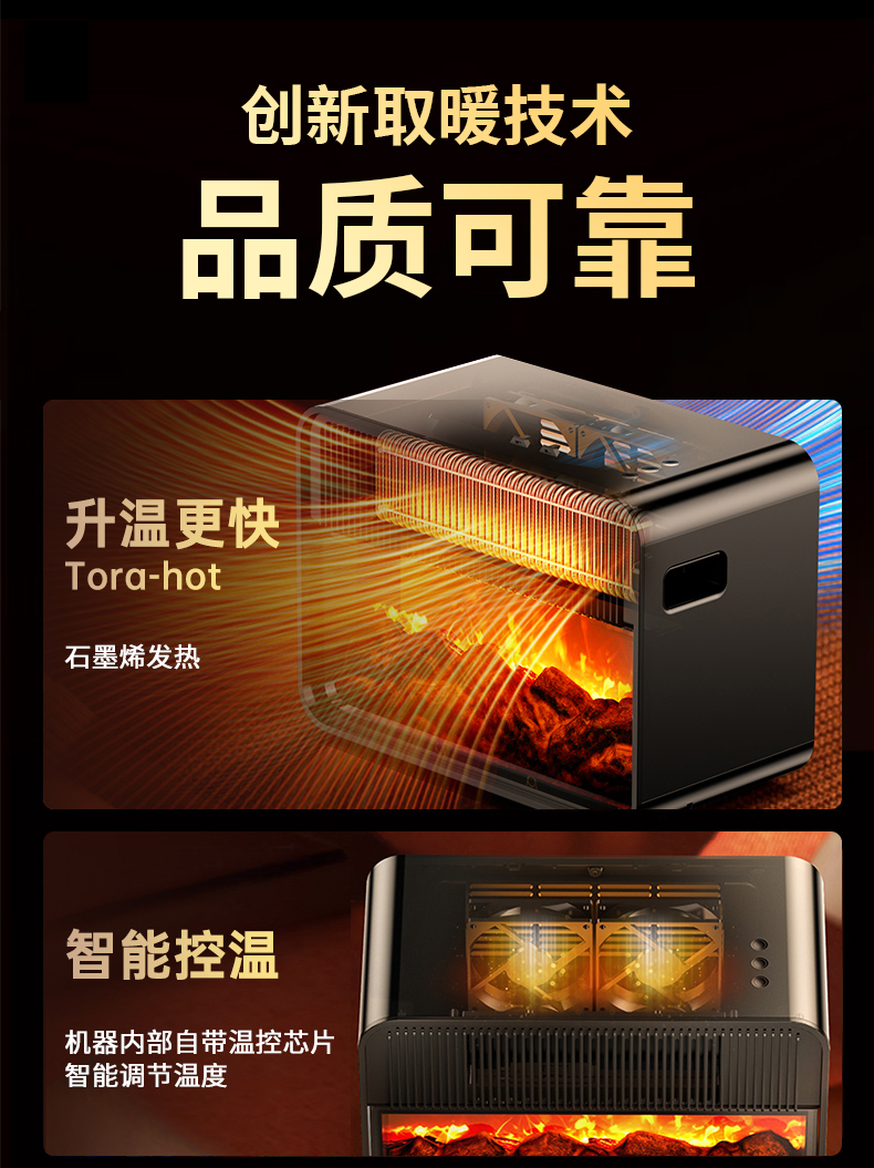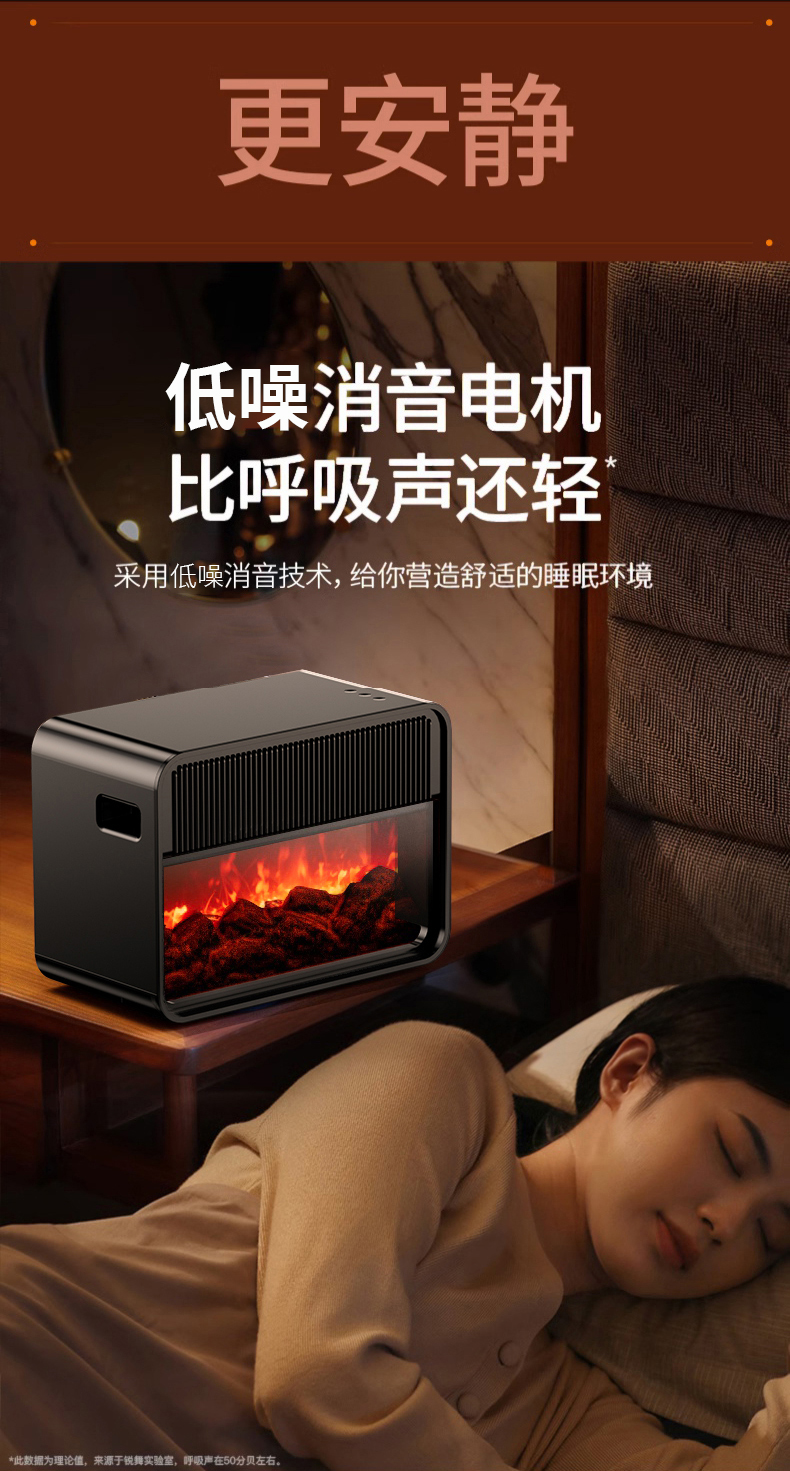 【仿真炭火取暖 1秒即暖】GUGINO壁炉取暖器D3 第3代MCH速热技术 仿真3d火焰 三档控温 360度广角全屋供暖