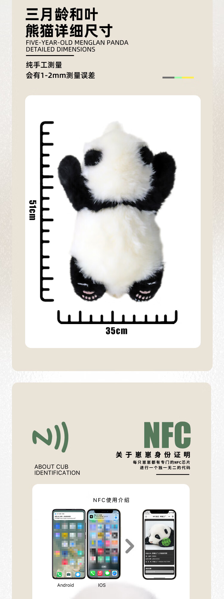 熊猫工厂 仿真熊猫玩偶 3月龄 叶叶 仿真熊猫玩偶送女友情人节礼物可爱儿童毛绒公仔 长48*宽32*17