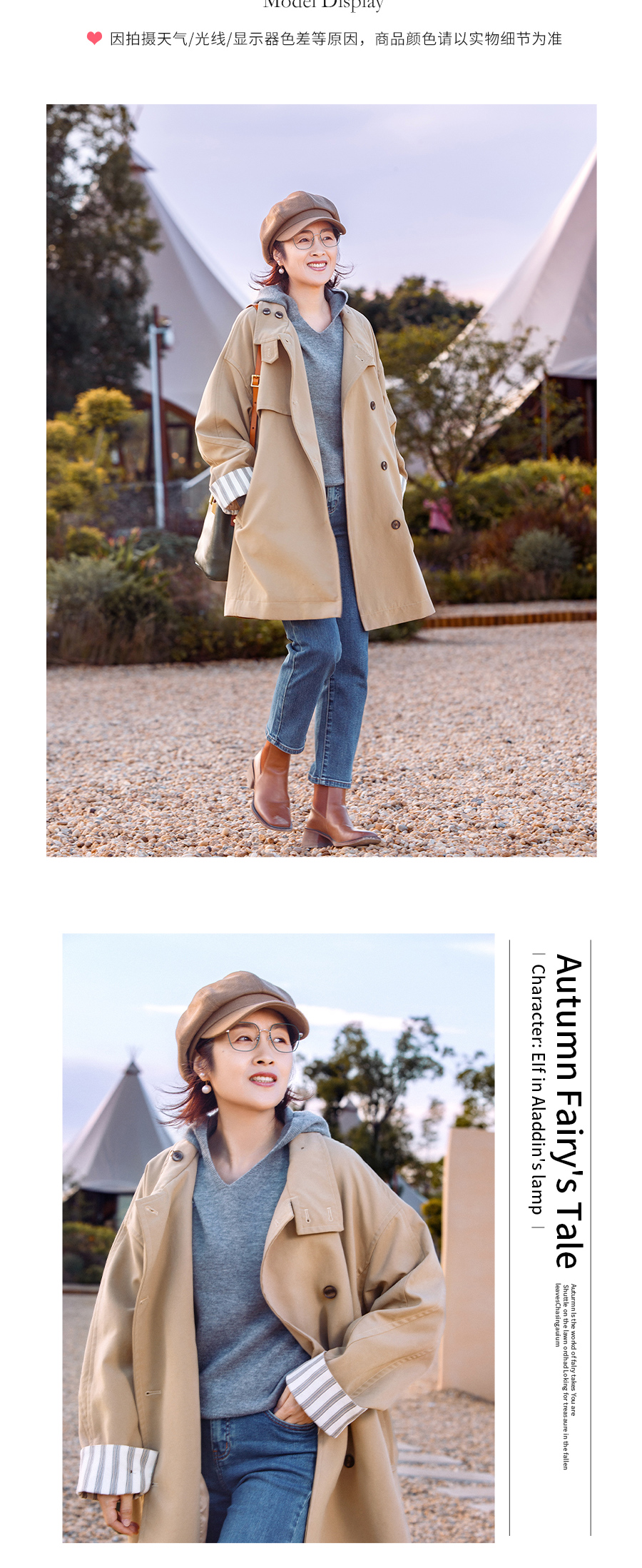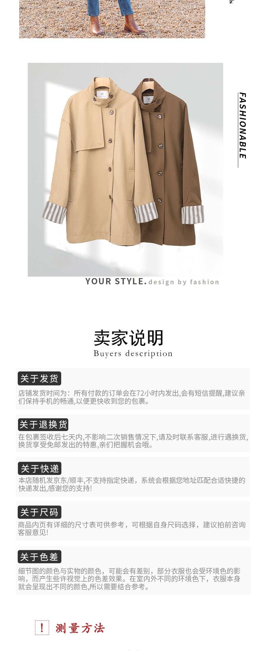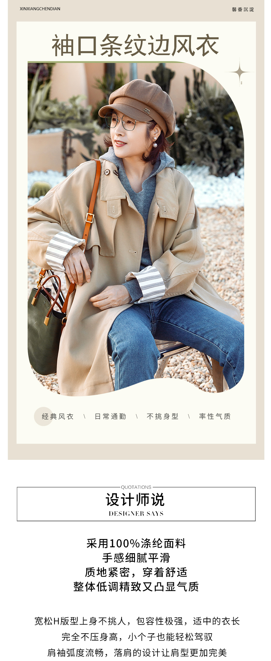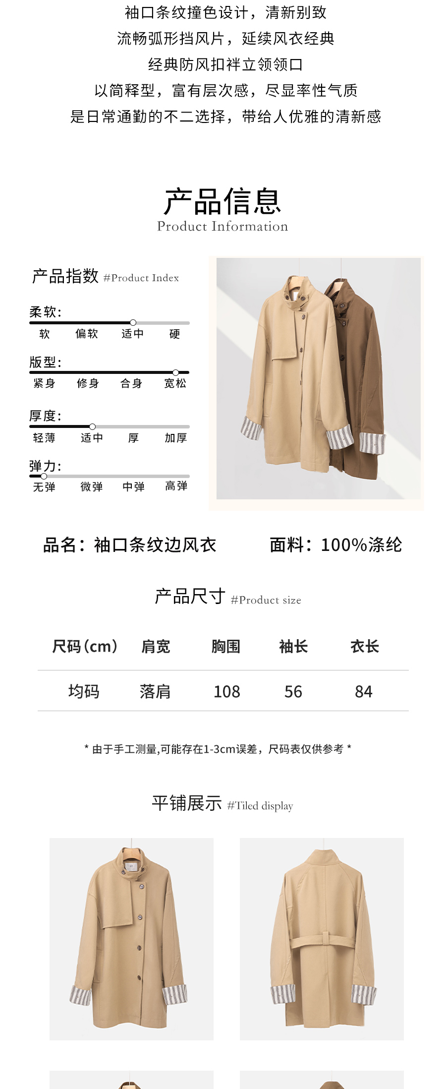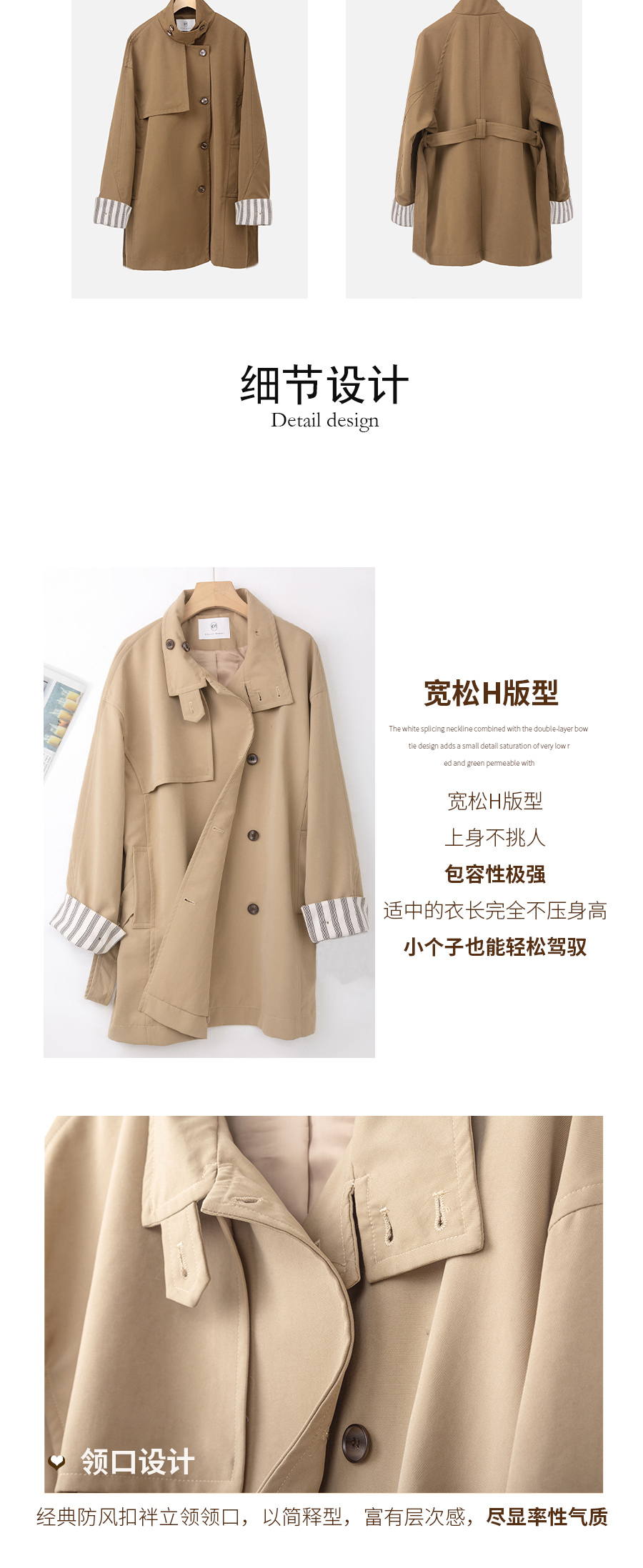 袖口条纹边风衣