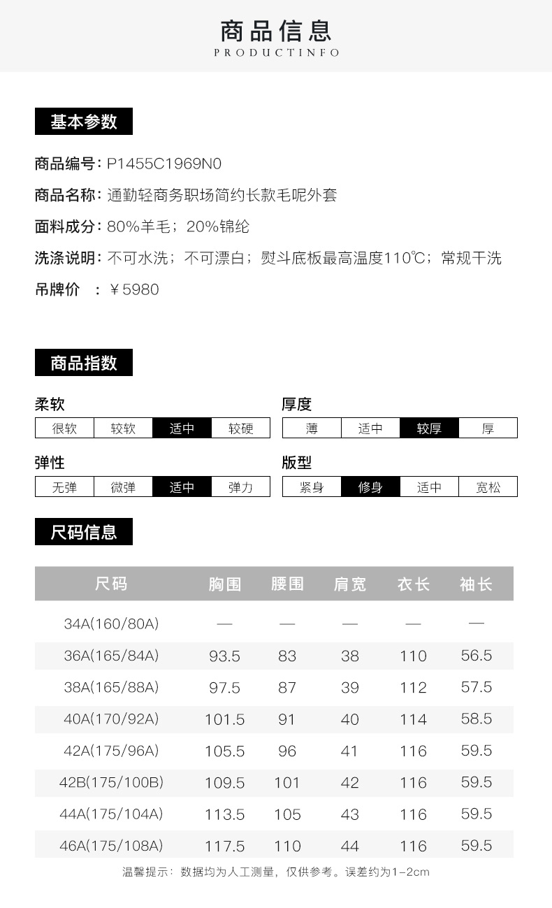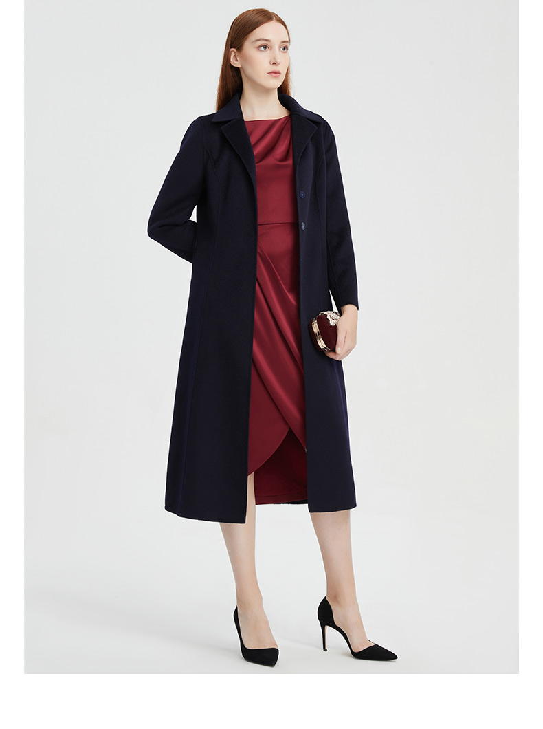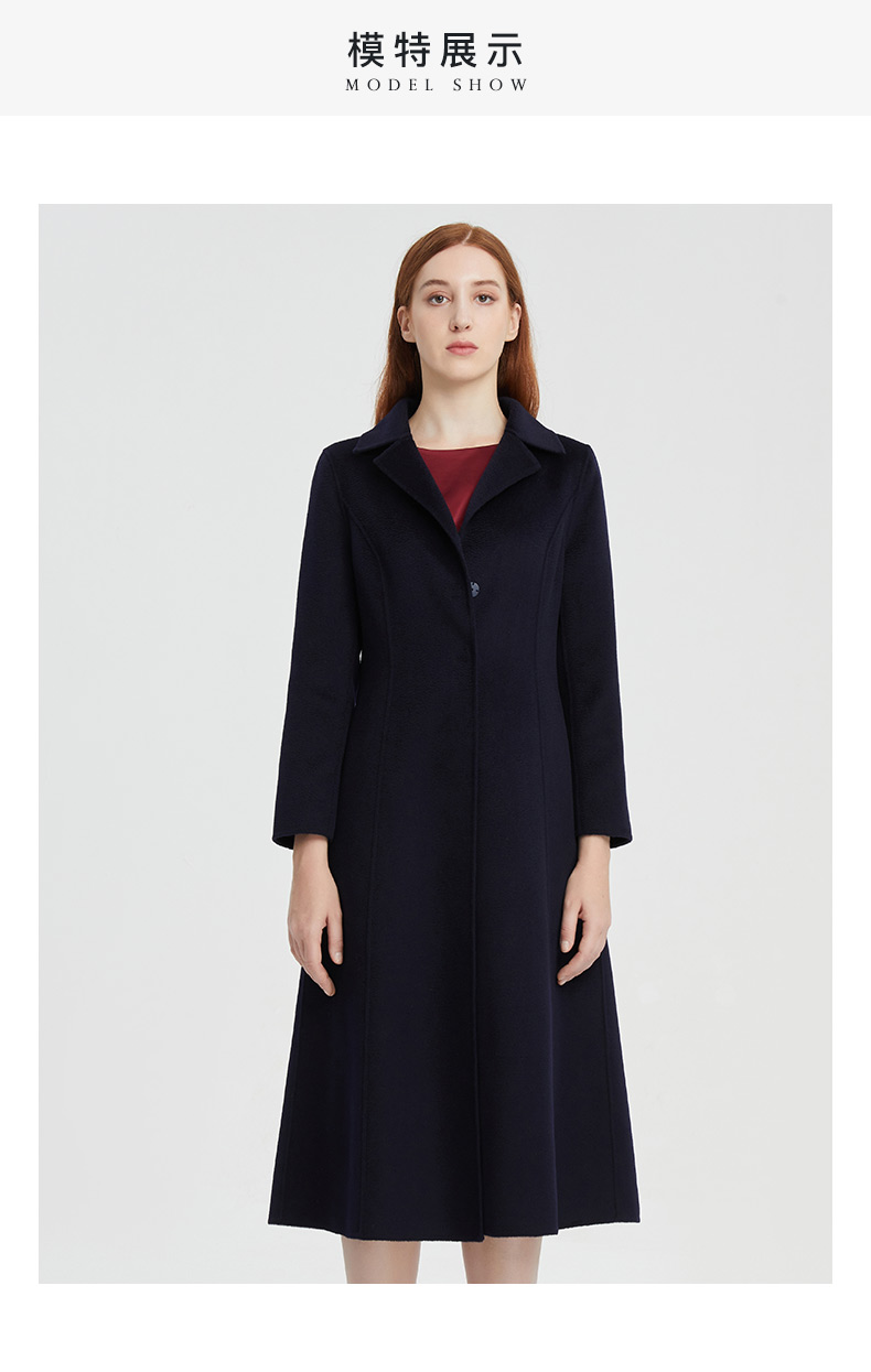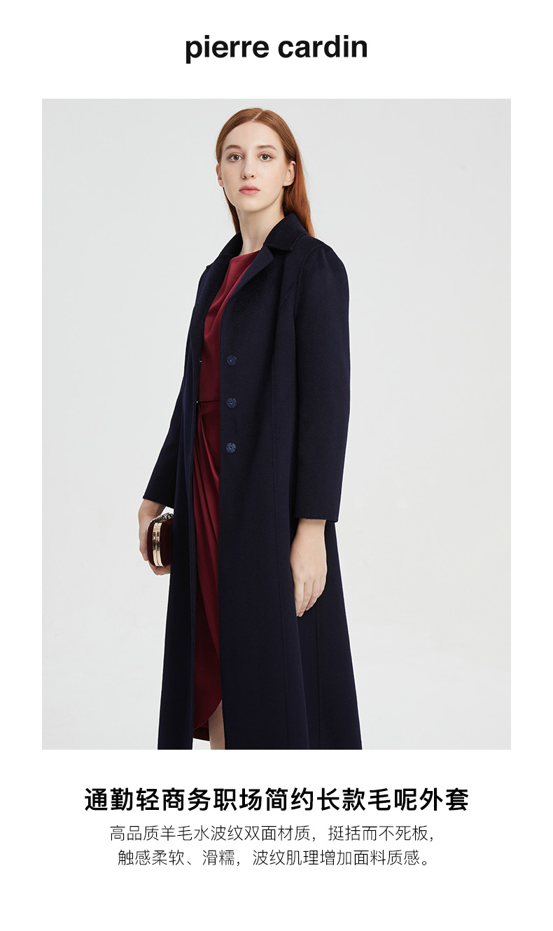 皮尔卡丹女装职场简约羊毛通勤气质中长款大衣P1455C1969N0