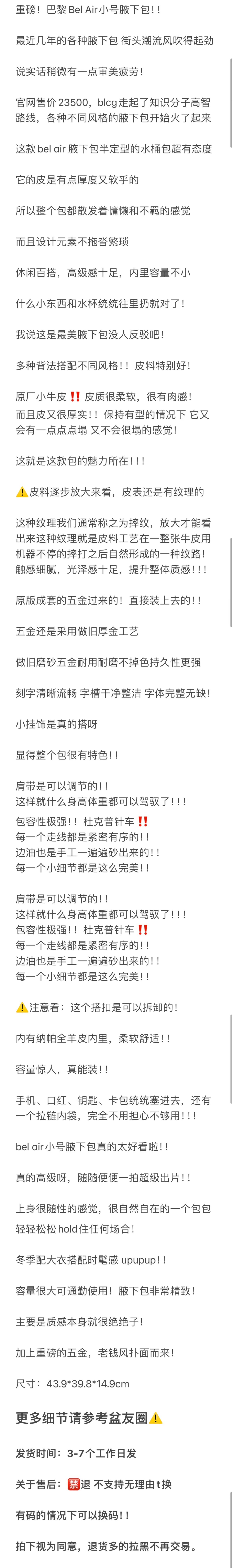 重磅渠道 Bel Air小号腋下包 34cm 意大利进口牛皮 手感超好!