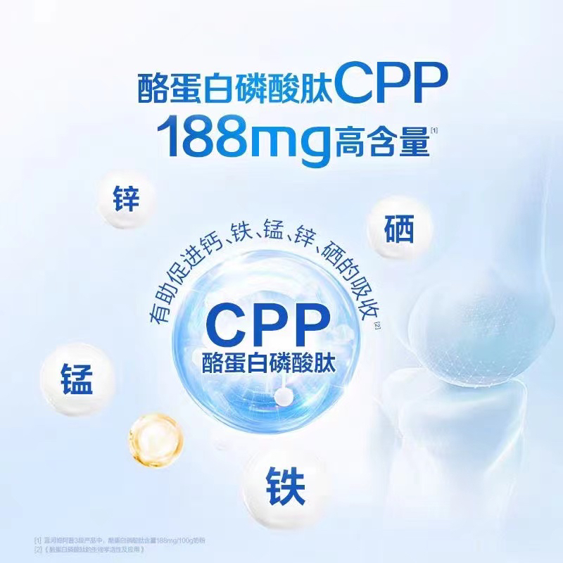 CPP188mg高含量,有助促进钙、铁、锰、锌和硒的吸收;