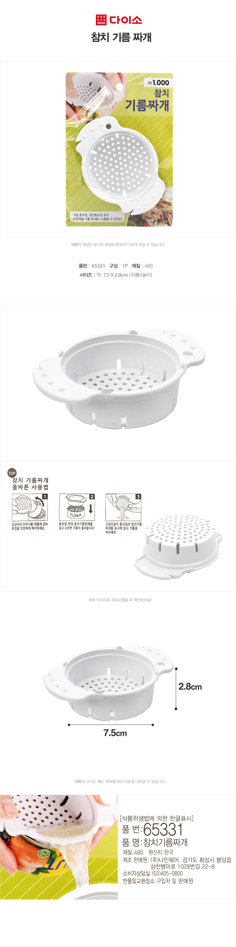 大创金枪鱼松鼠罐头榨油网漏油网 65331Daiso 滤油网JPY带授权招加盟代理