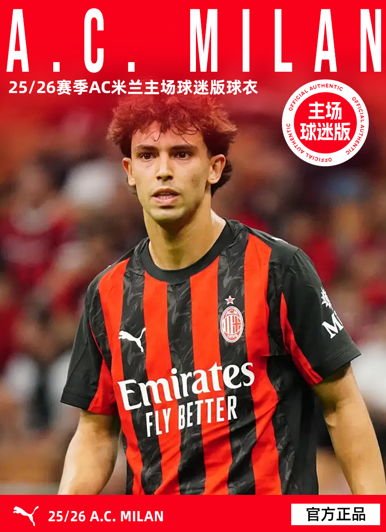 SFS彪马Puma 25/26AC米兰主场球迷版球衣短袖足球服 779962-01