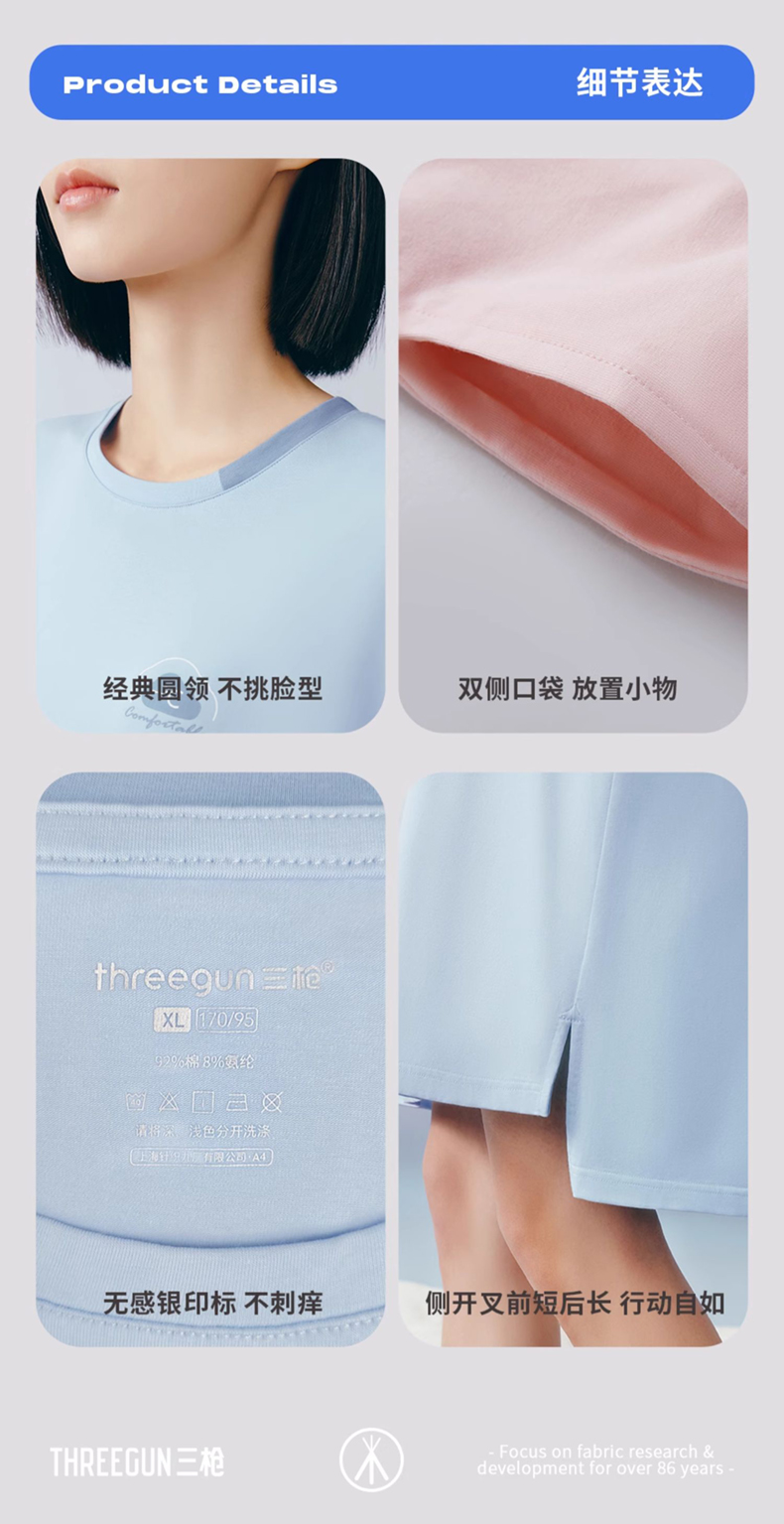 三枪冰泉棉圆领短袖女家居裙70506A011