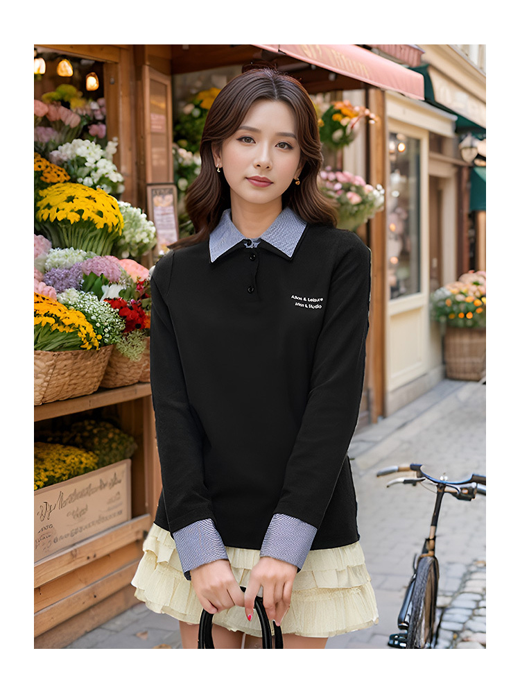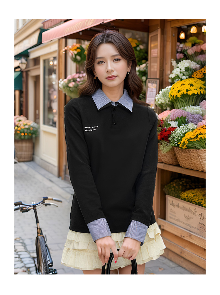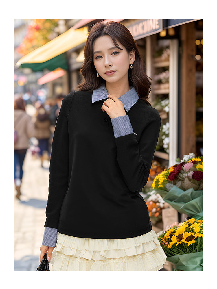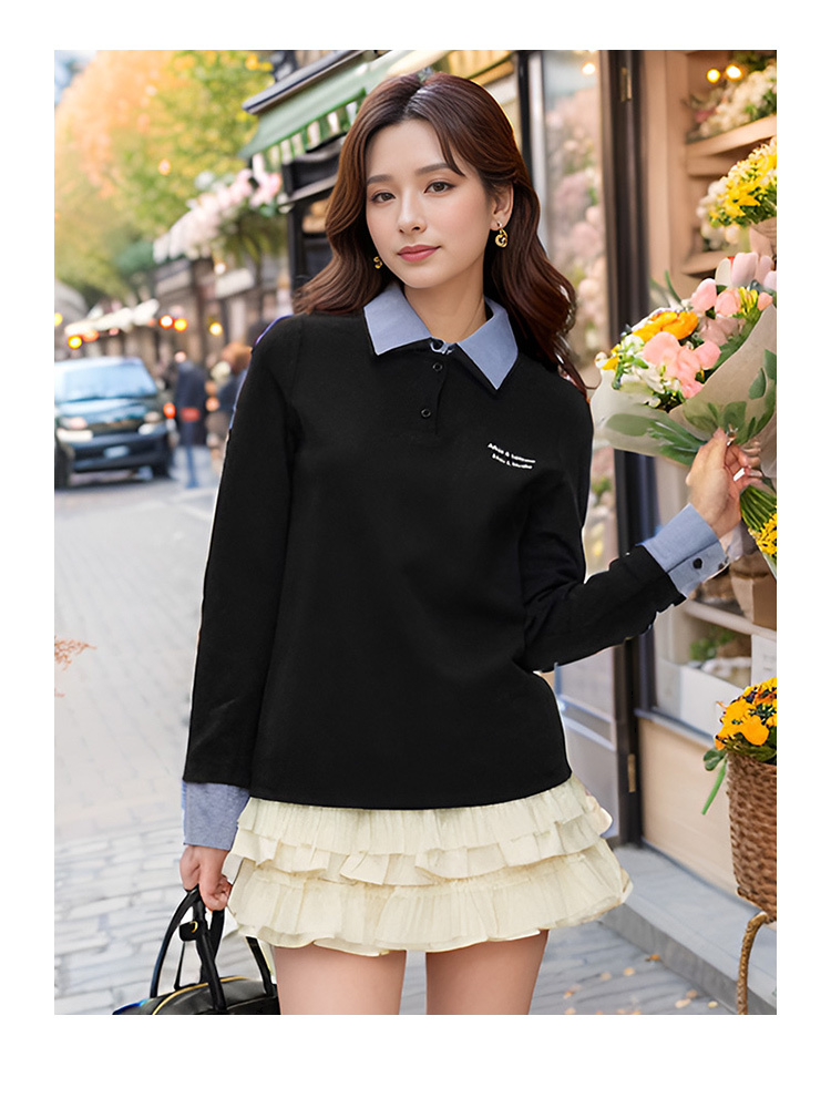 9/7奢姿大码女装2024秋季时尚百搭上衣胖妹妹学院风翻领假两件卫衣9943134058