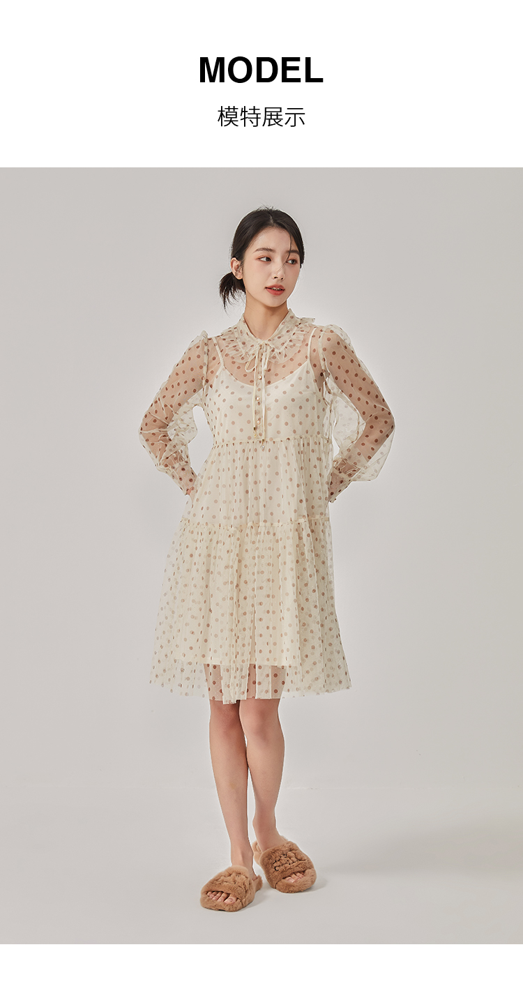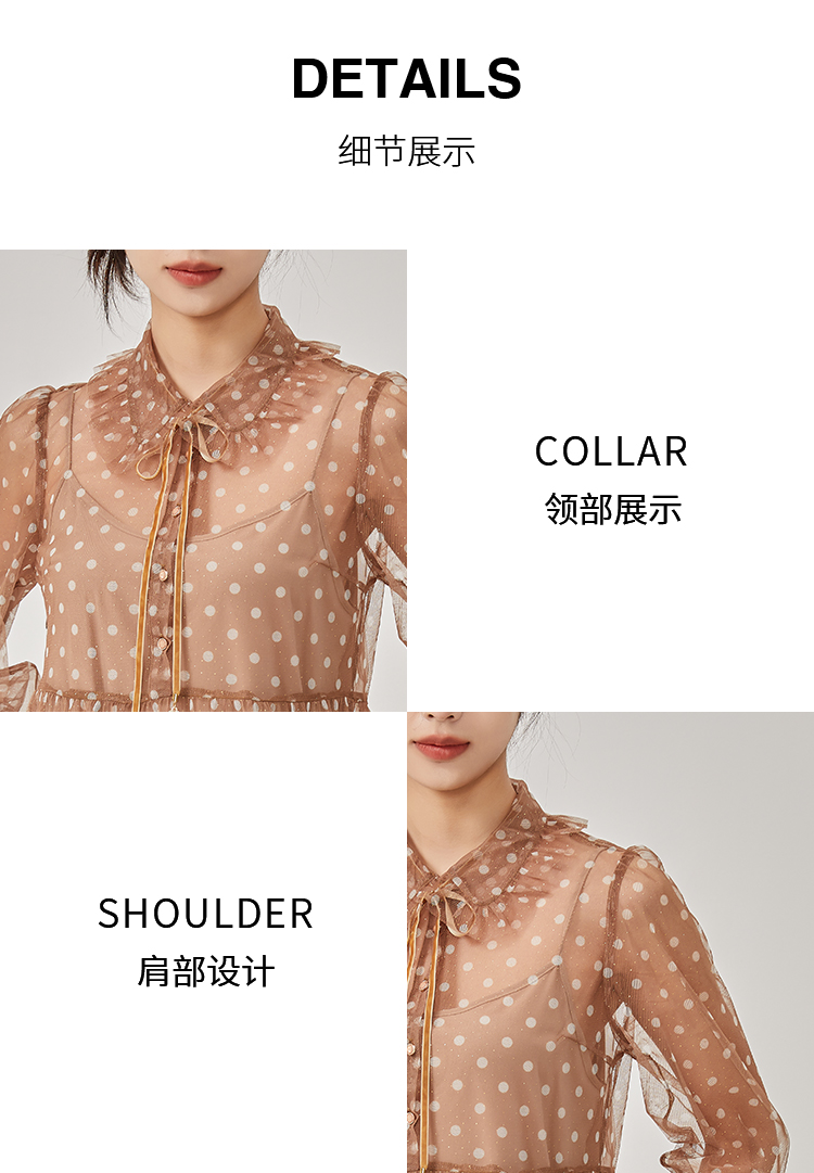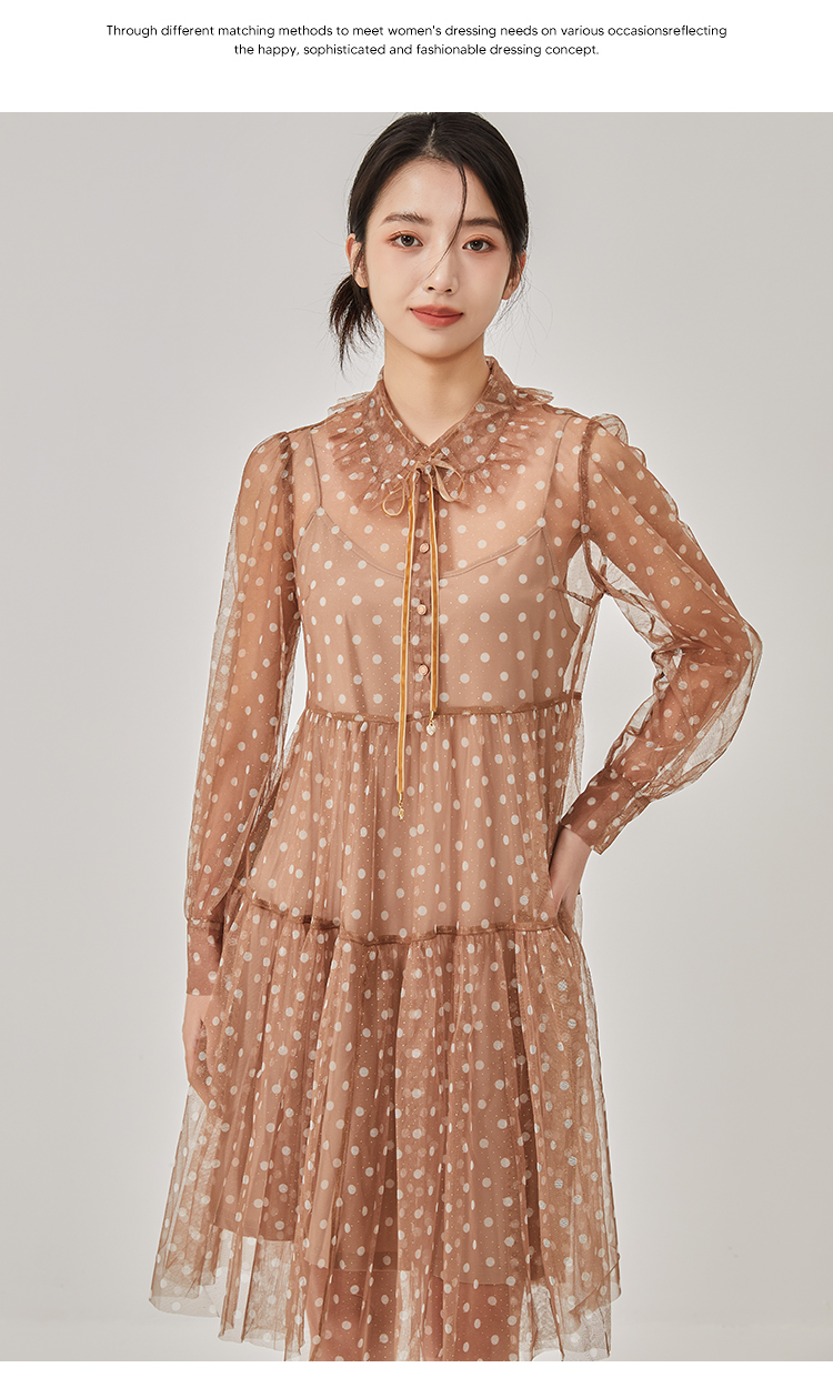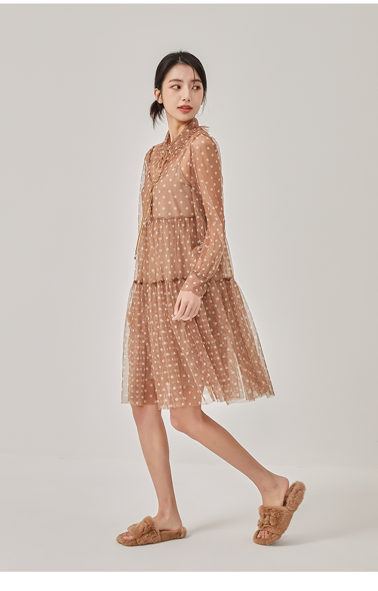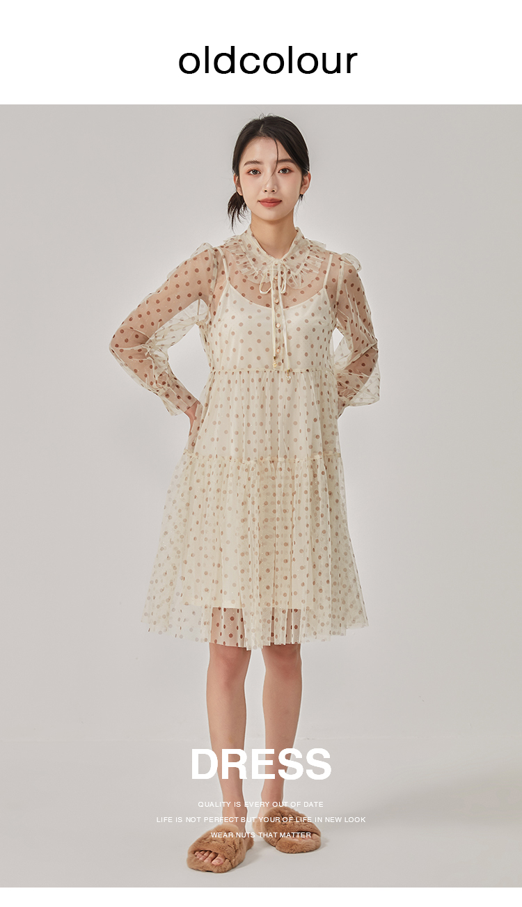 oldcolour春秋新款甜美气质波点网纱中长款连衣裙女GO11103625