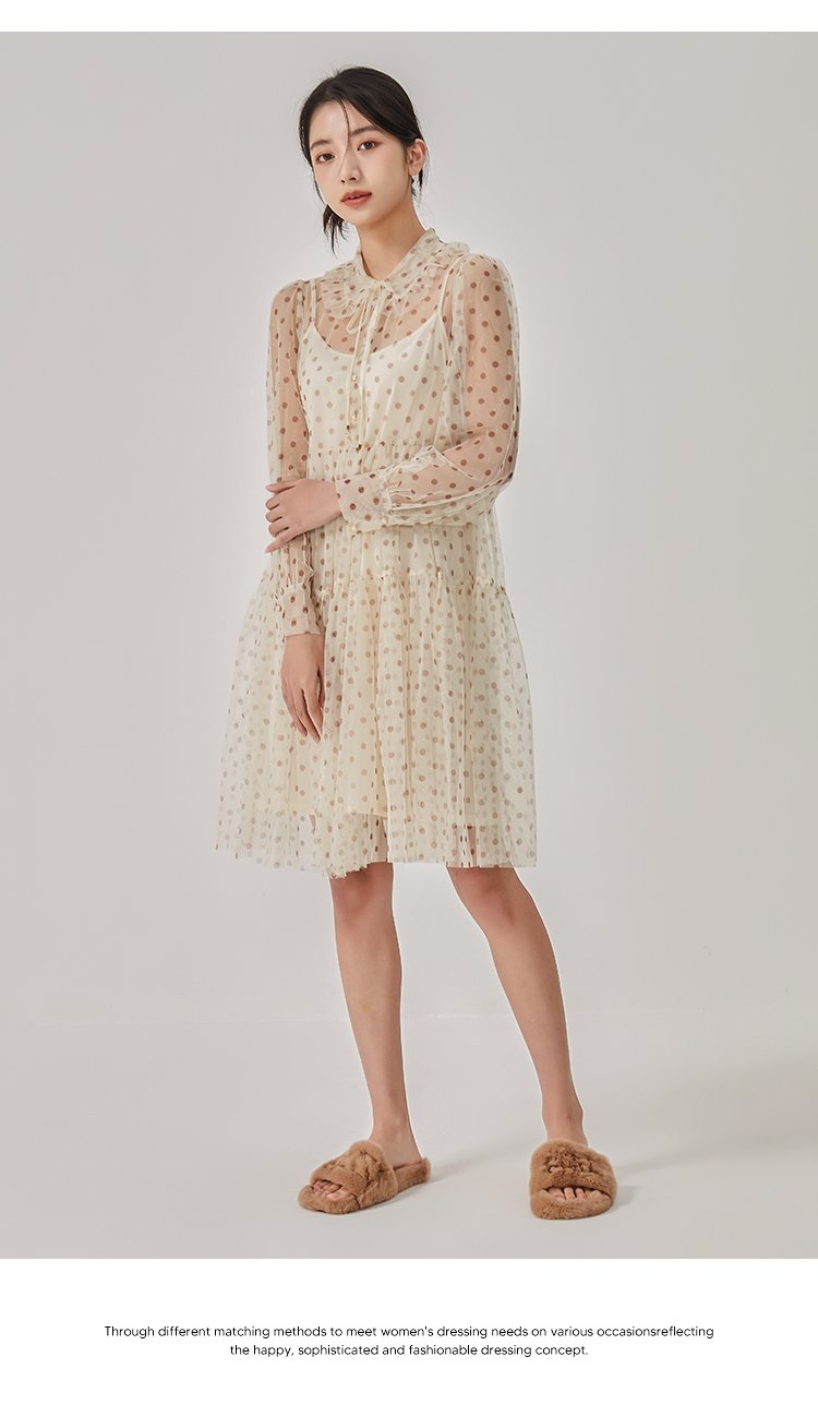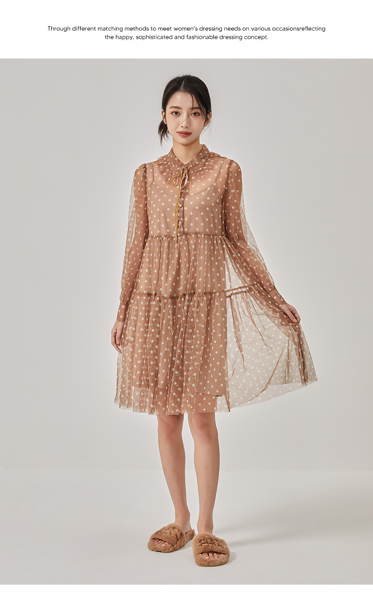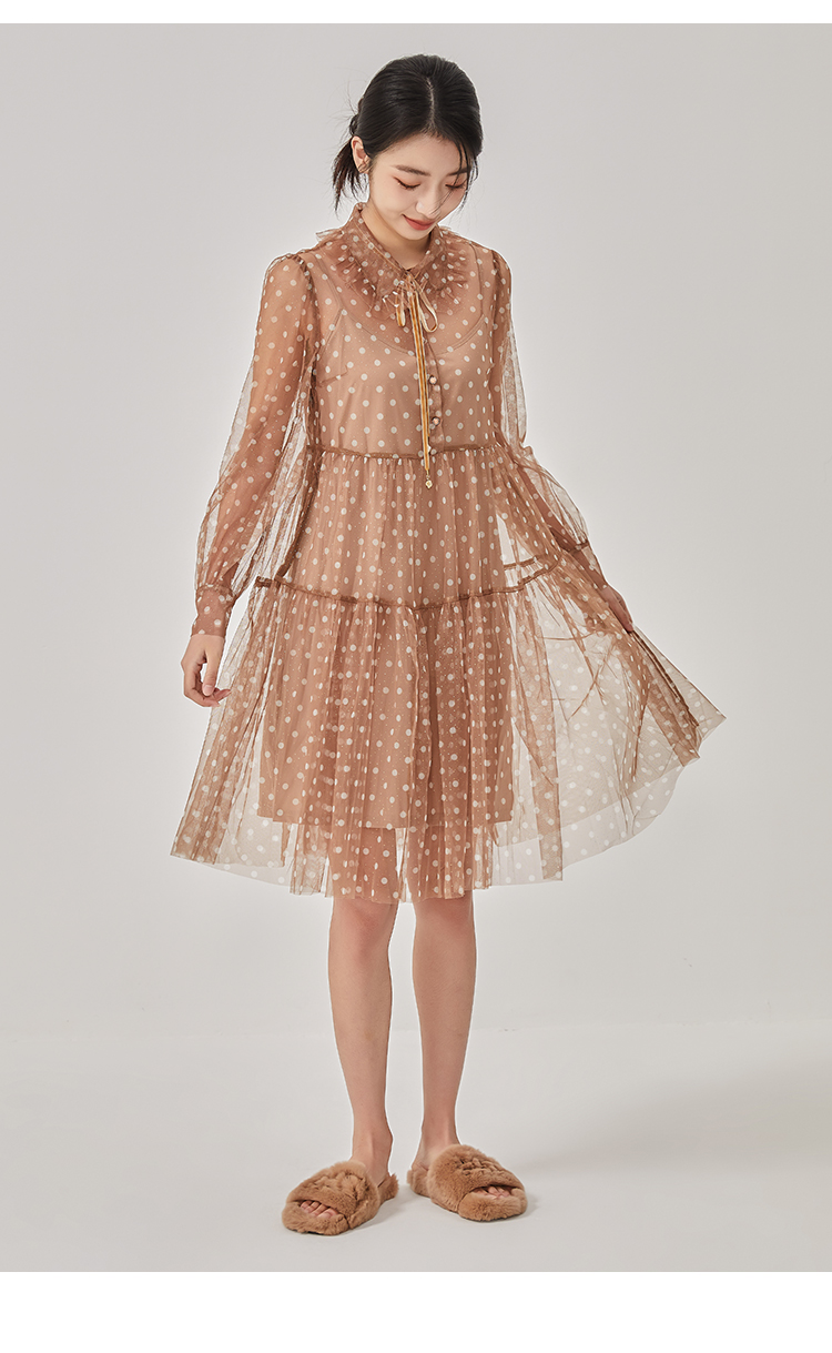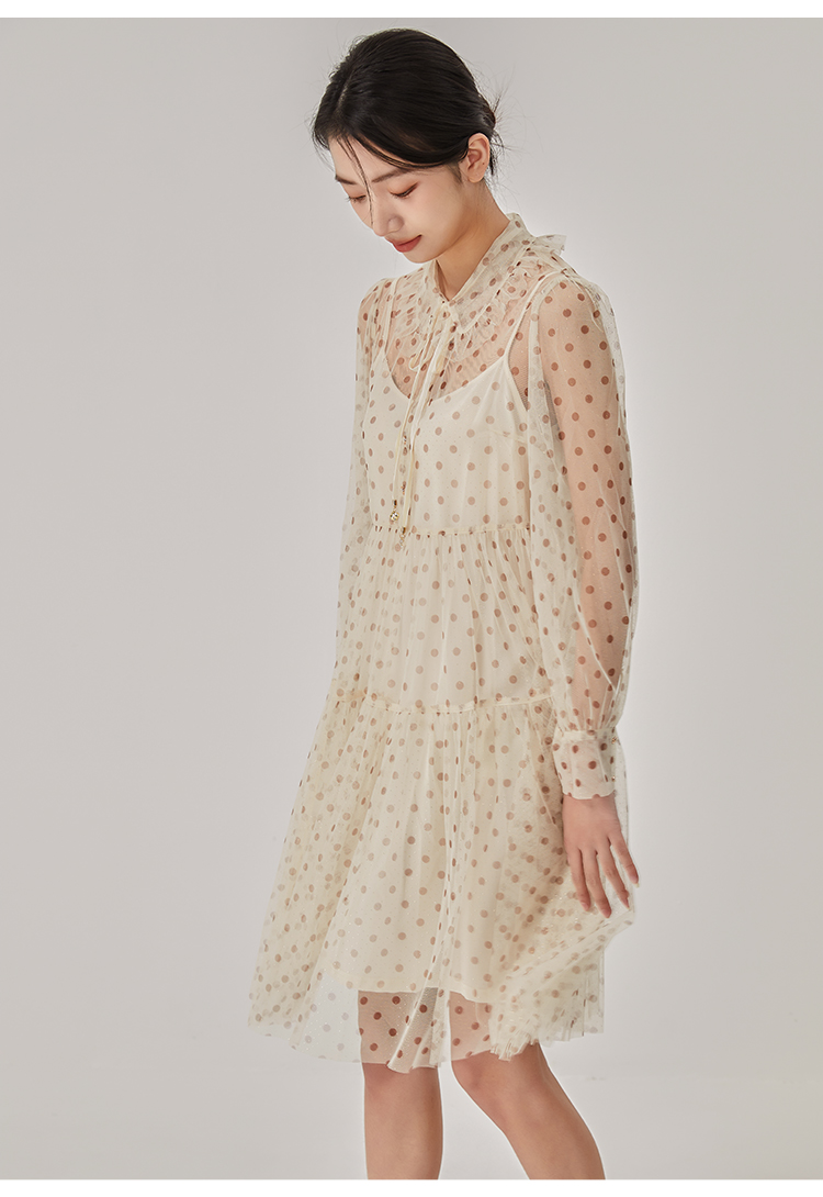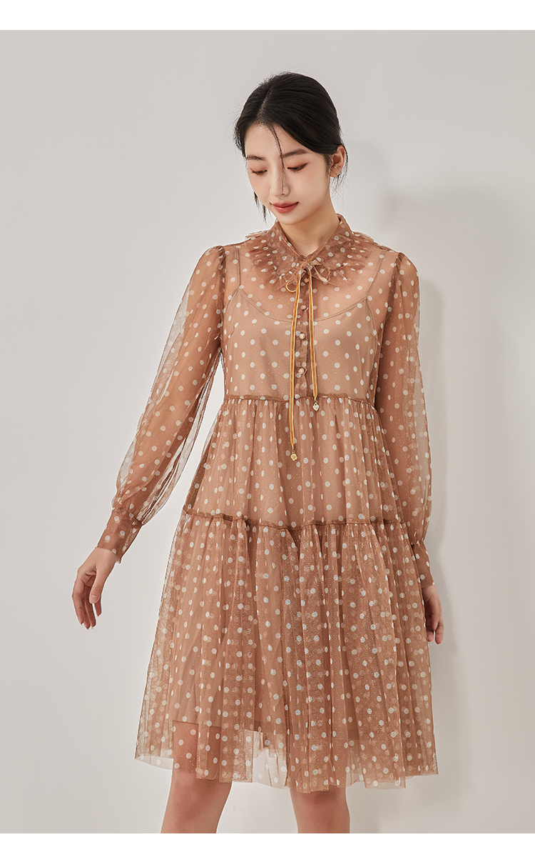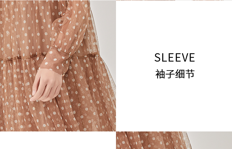 oldcolour春秋新款甜美气质波点网纱中长款连衣裙女GO11103625