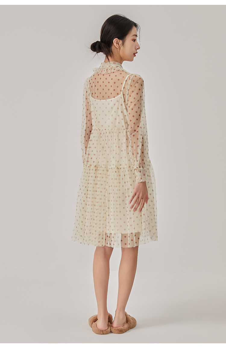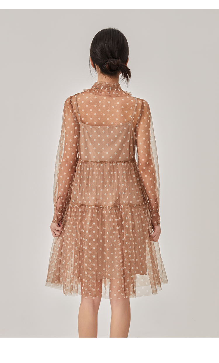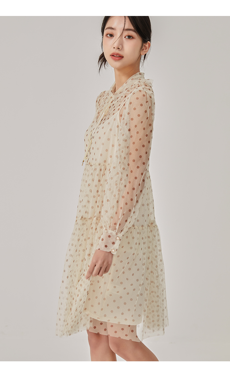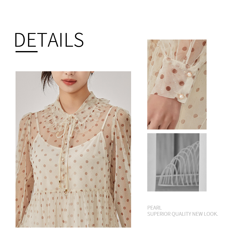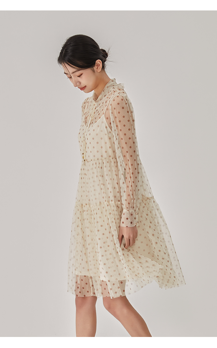 oldcolour春秋新款甜美气质波点网纱中长款连衣裙女GO11103625