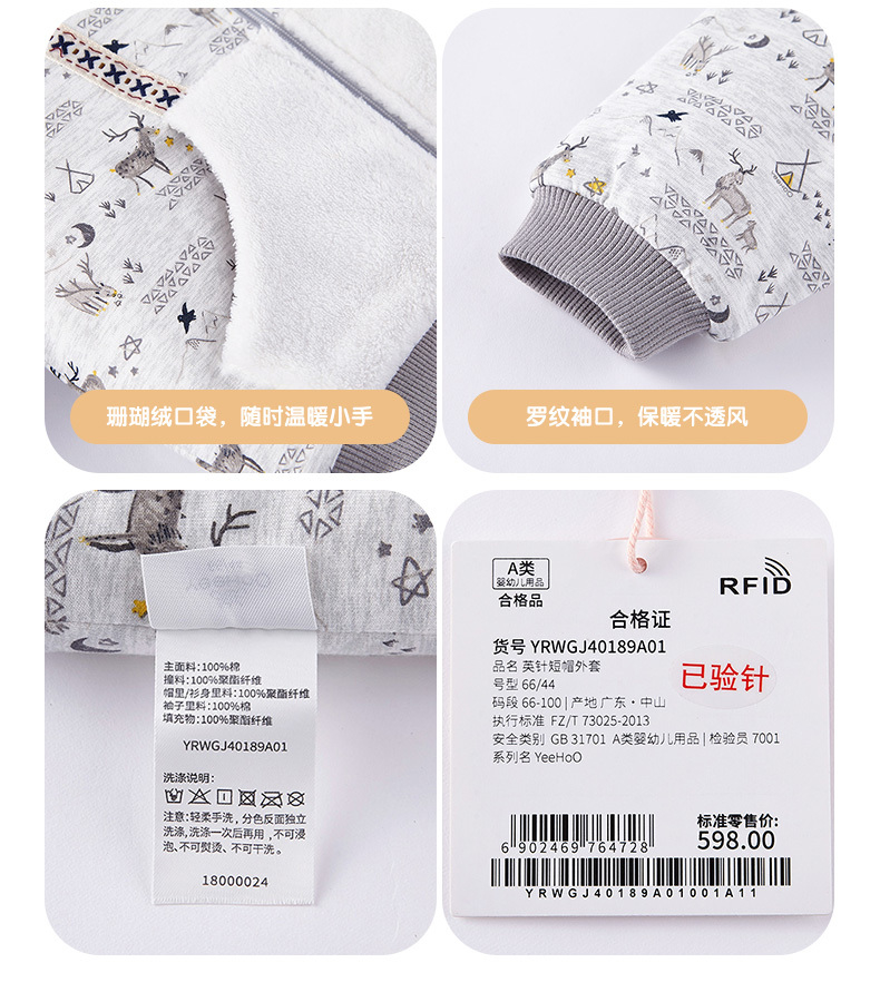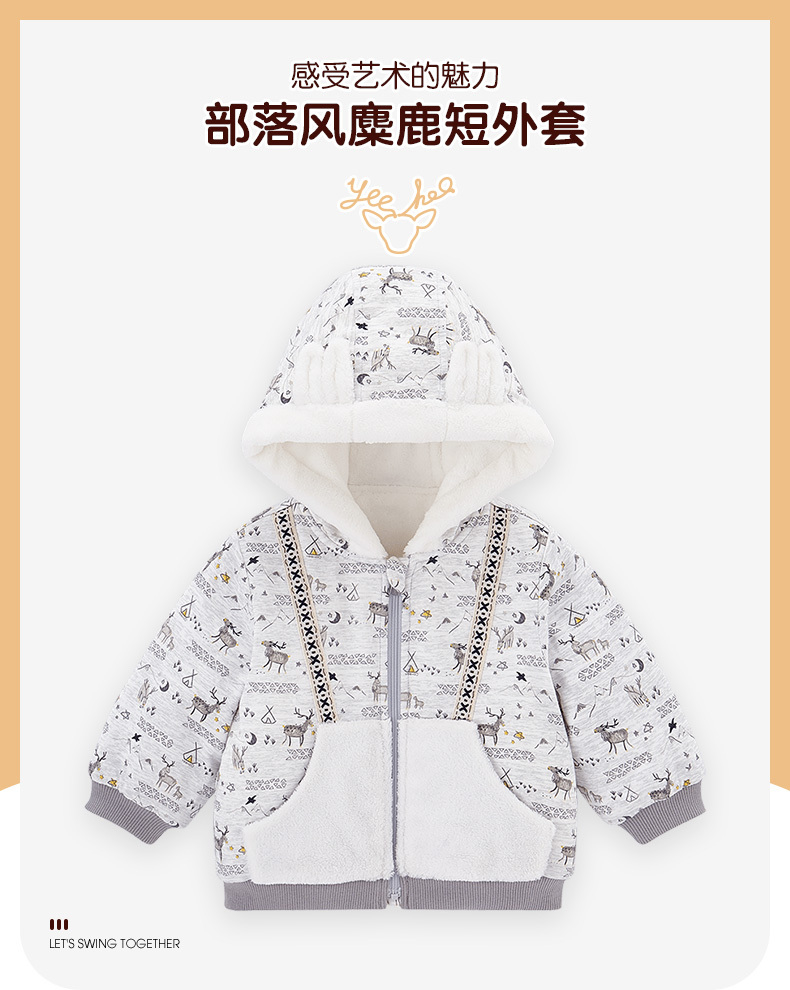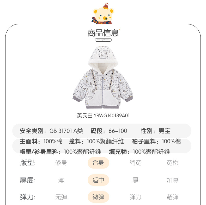 英氏-童衣类(冬)D0英针短帽外套 英氏白 100CM