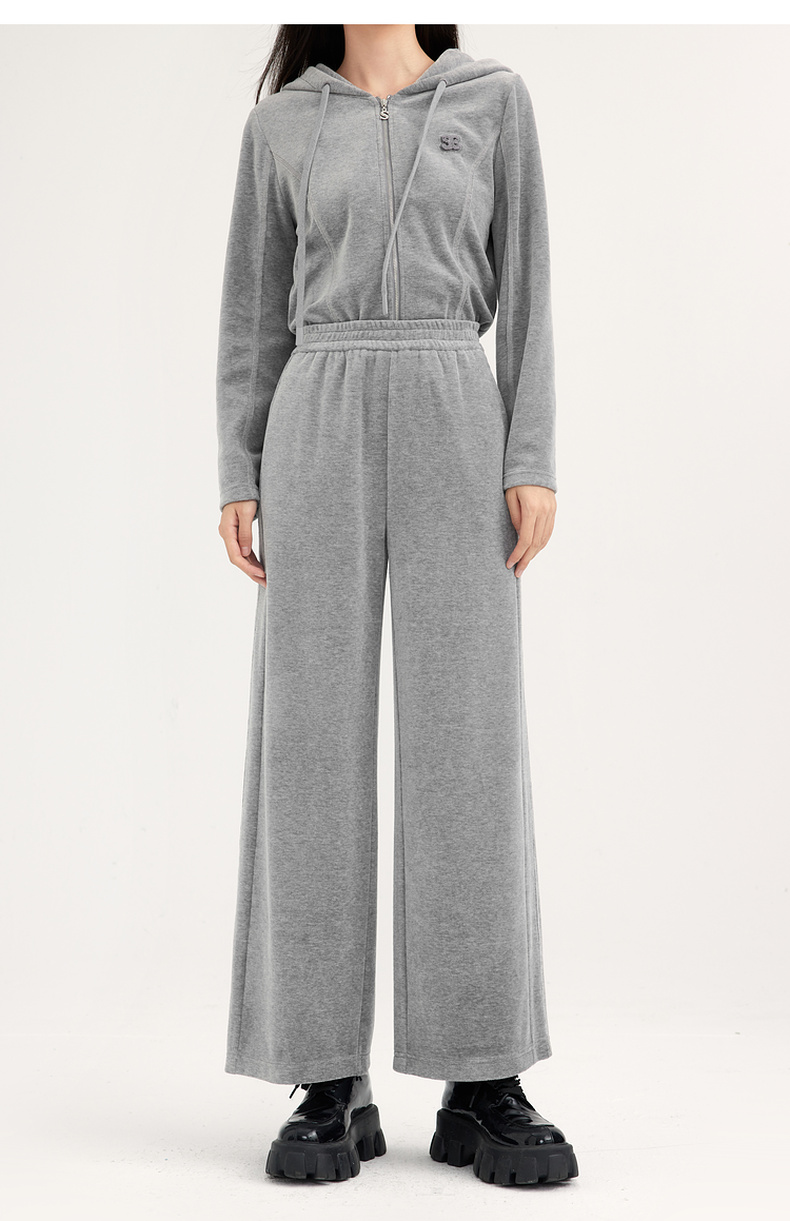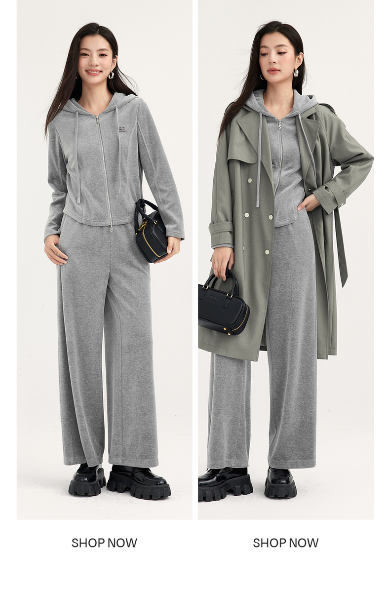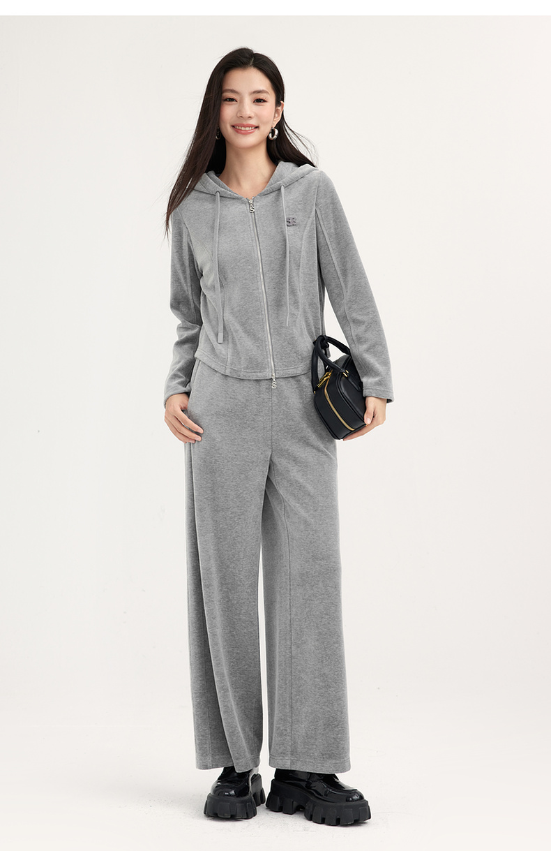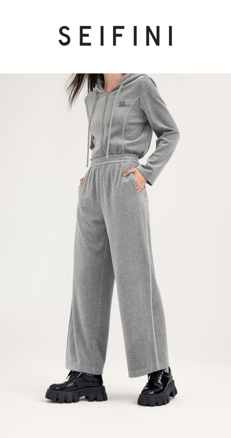 【商场同款】诗凡黎灰色直筒休闲裤2024春新款垂感长裤3F1150101