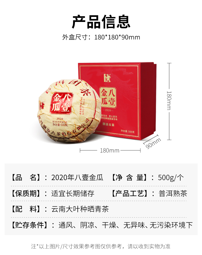 澜沧古茶2020年八壹金瓜普洱茶熟茶八一云南贡瓜古茶老熟茶500g