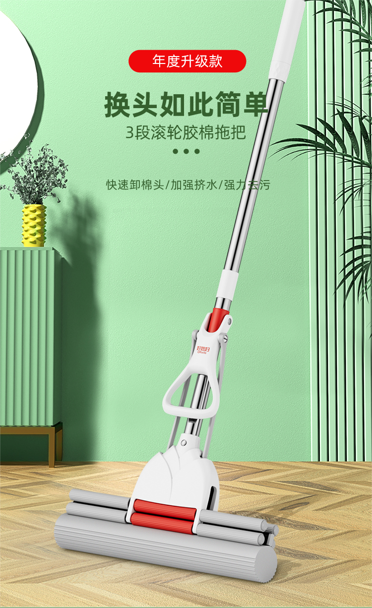 好媳妇胶棉头新款大号家用吸水海绵拖把免手洗一拖净拖地神器