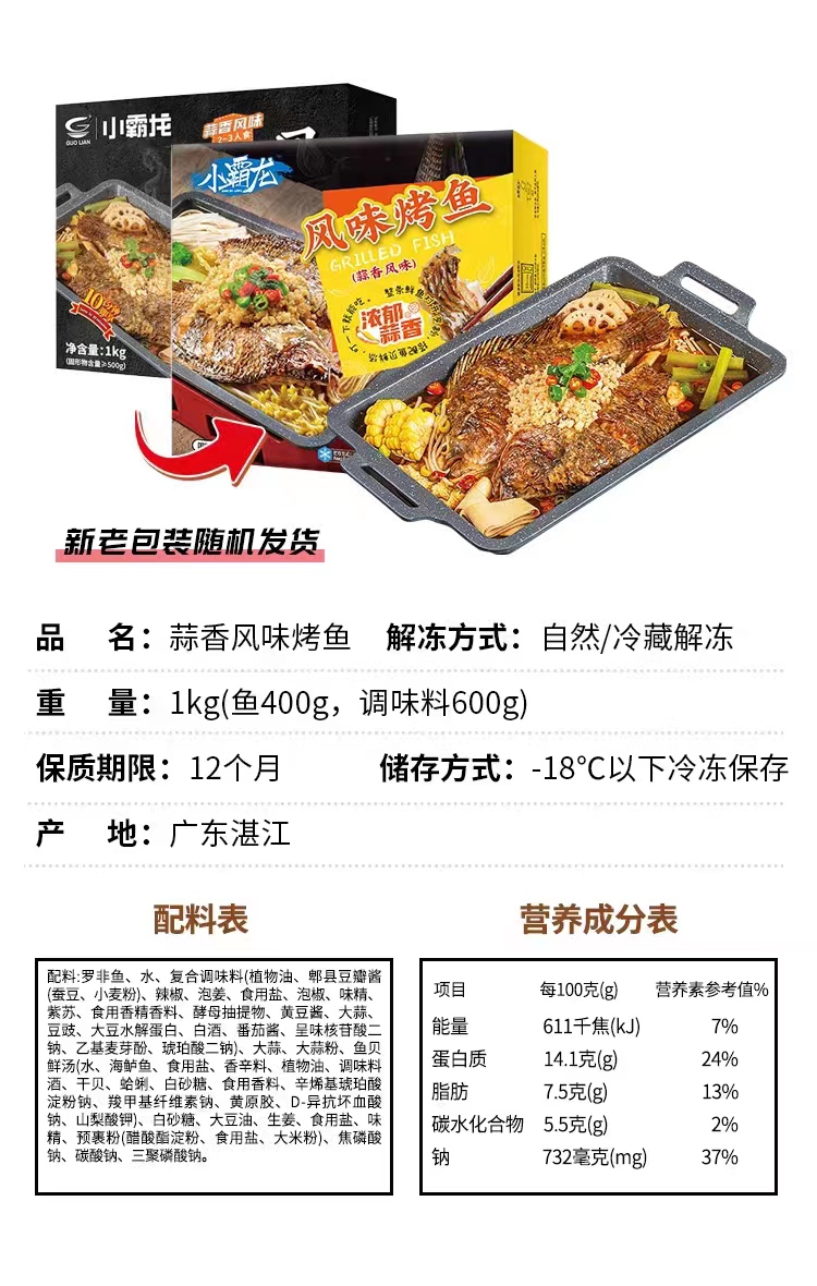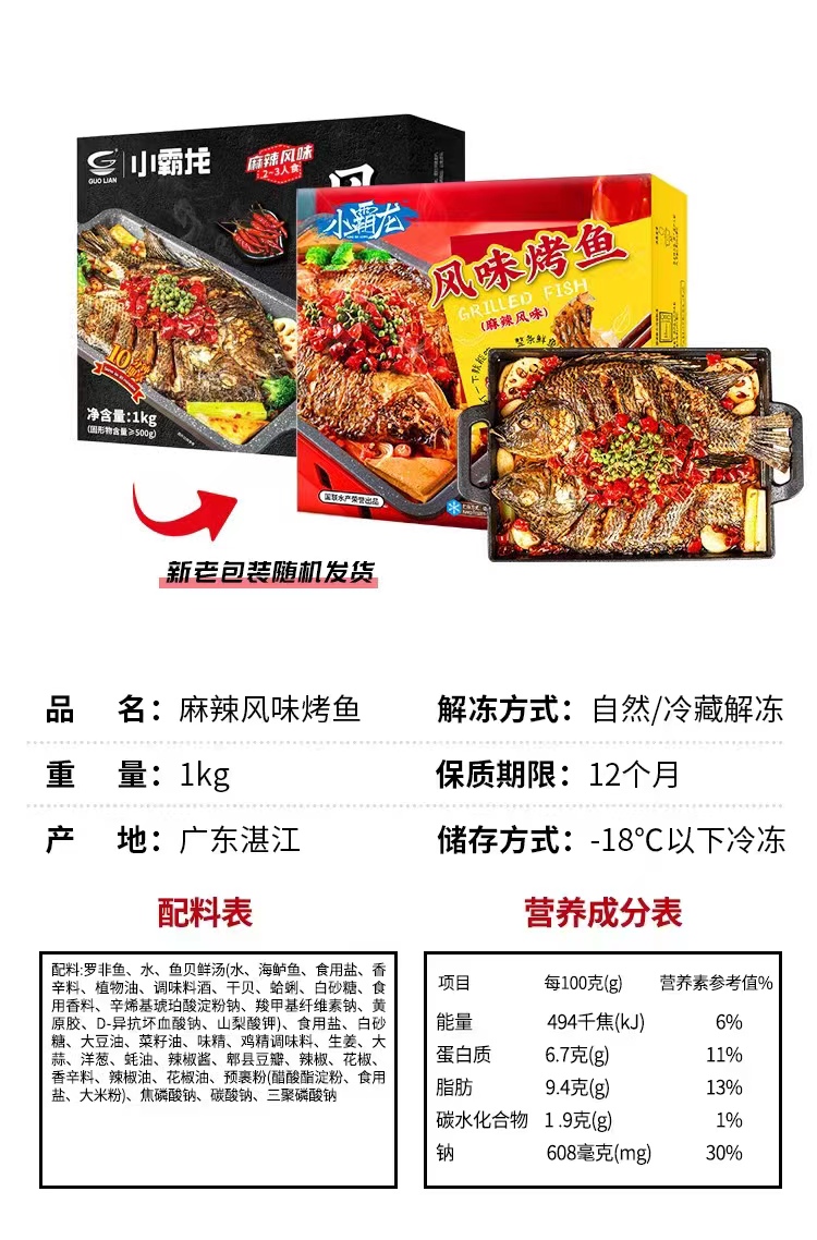 国联烤鱼1kg/ 盒( 2盒装)精选罗非活鱼熬制 加热即食