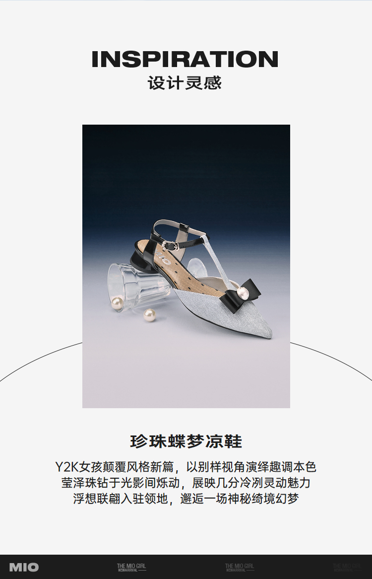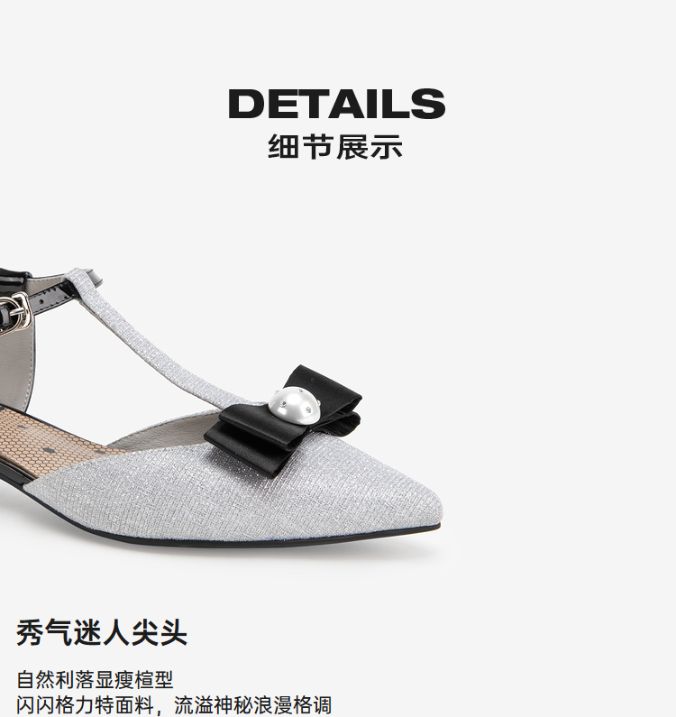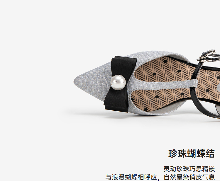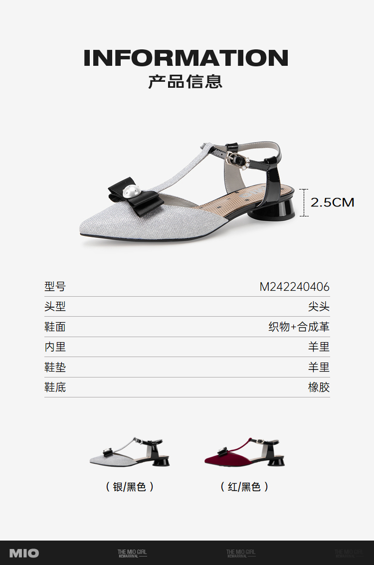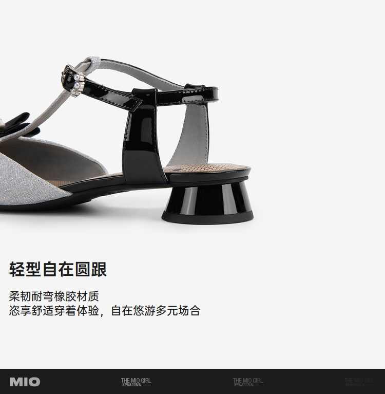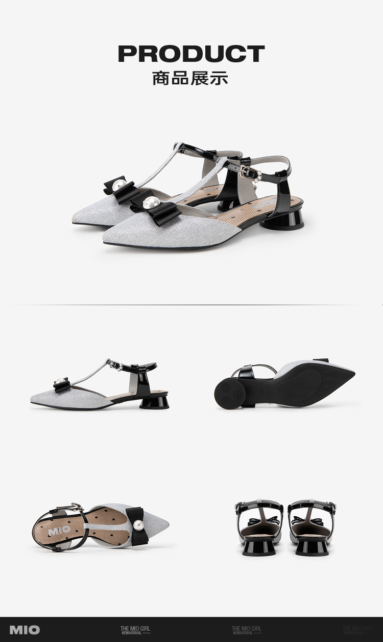 MIO米奥夏季尖头低圆跟时装凉鞋珍珠蝴蝶结通勤凉鞋女M242240406