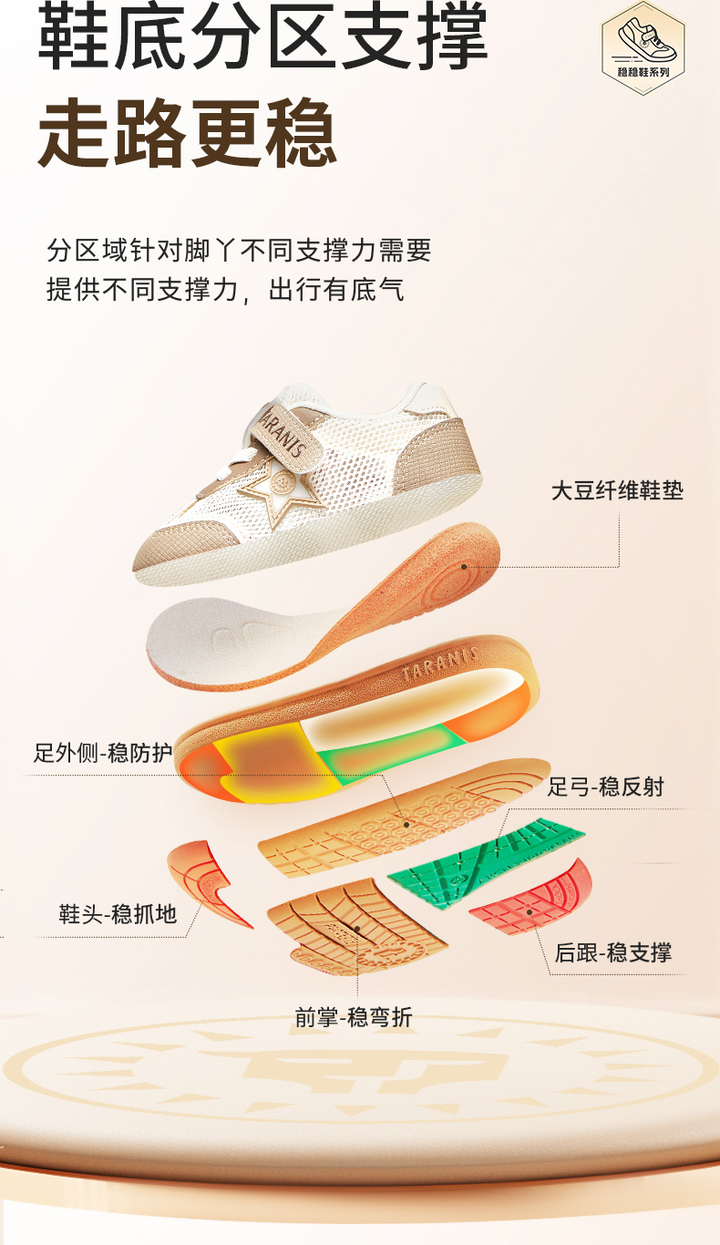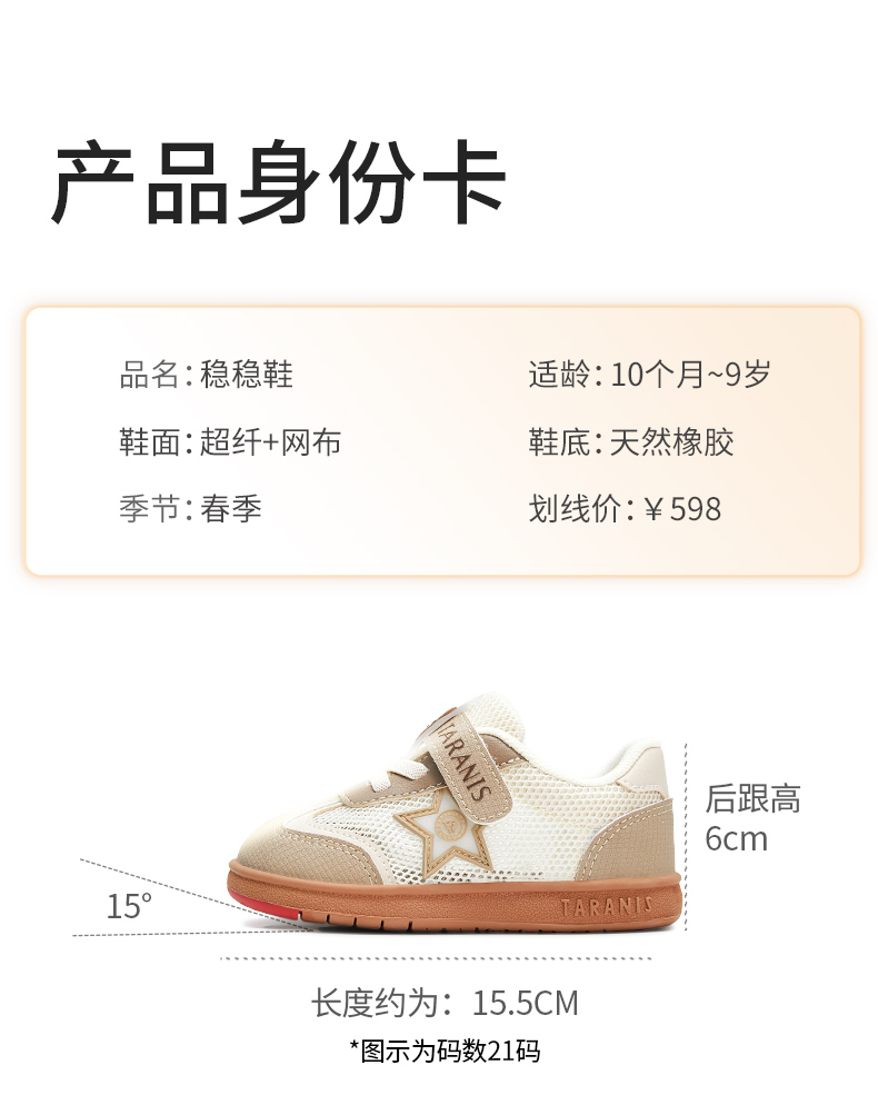 泰兰尼斯稳稳鞋春季新款儿童鞋学步鞋男宝宝网布透气机能鞋女童鞋 T26T4A4567/T26X4A4567