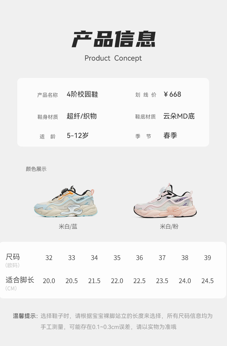 泰兰尼斯儿童跑步鞋男女童26春季新款中大童校园轻便缓震运动鞋T01D6A8737