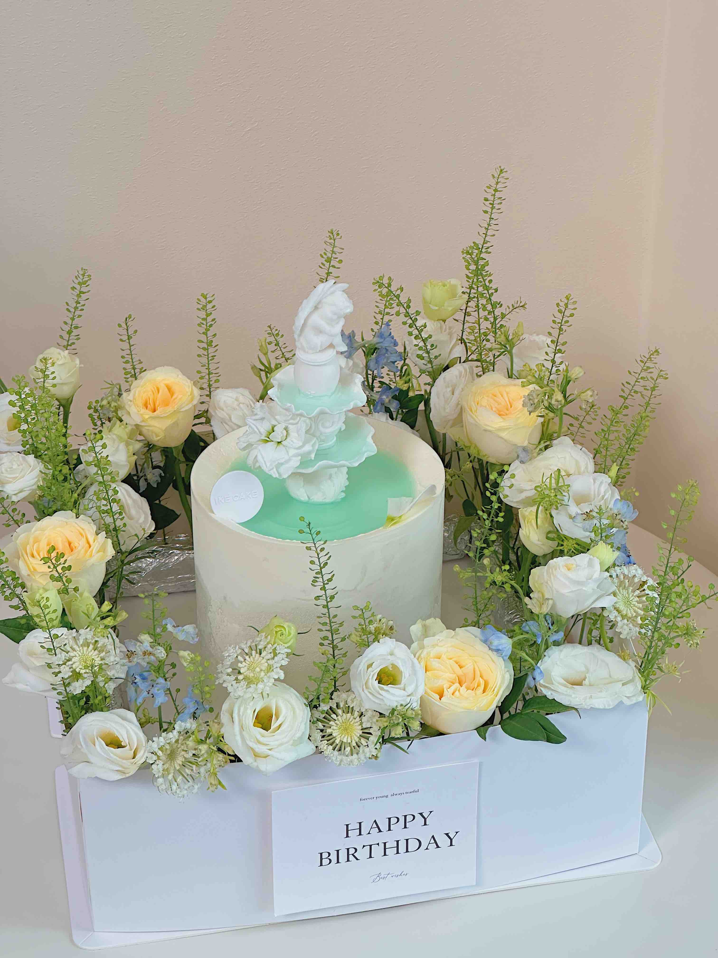 奶油杯许愿池 (鲜花不一定能买到一样的,按色系搭配)