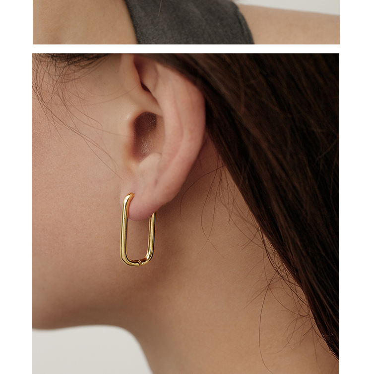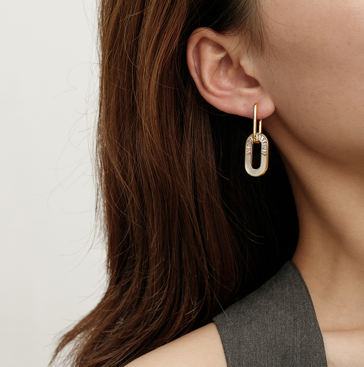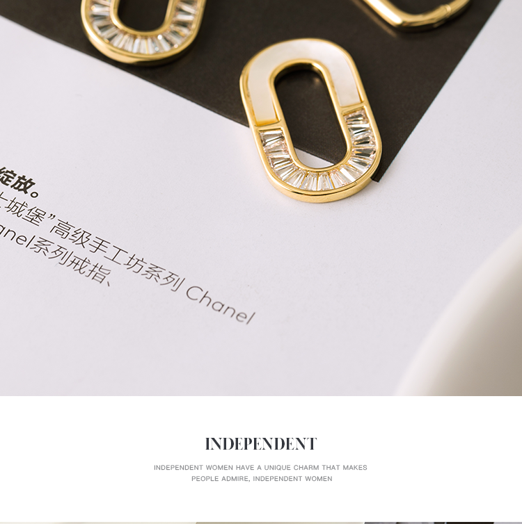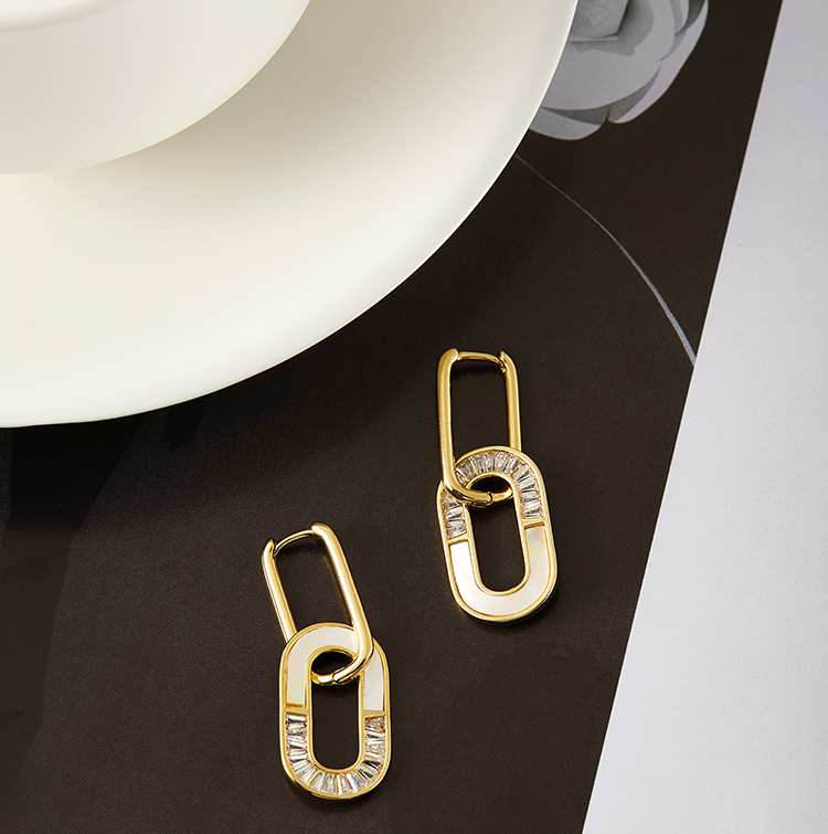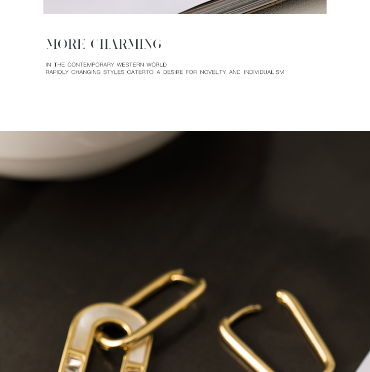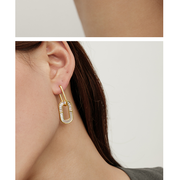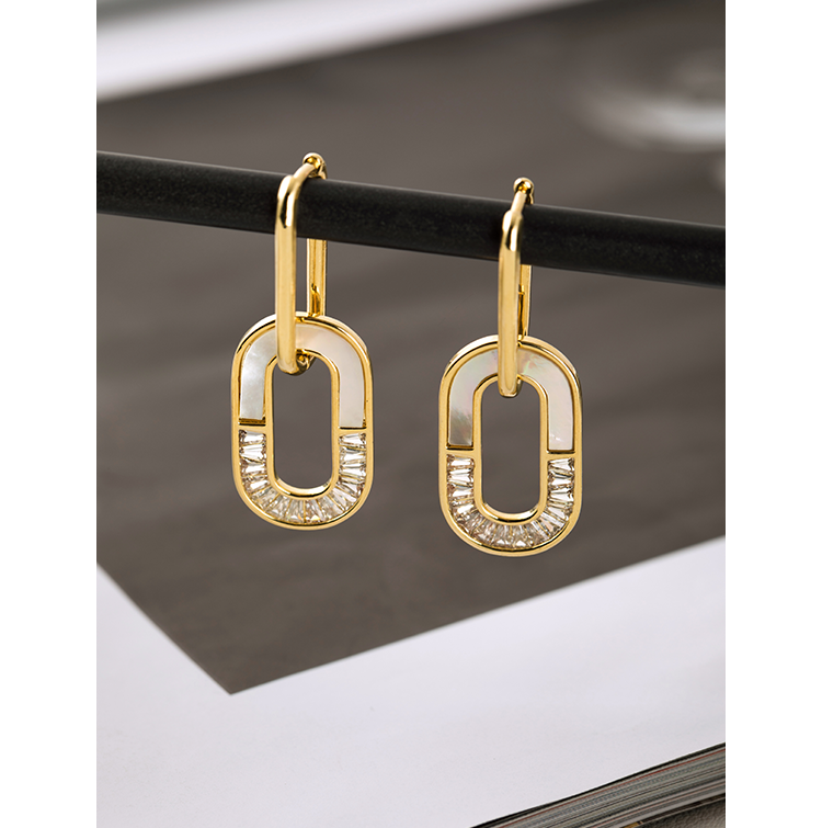 Oflye潮流饰品 气质方贝母耳环女轻奢耳坠小众耳钉复古金色耳饰夏
