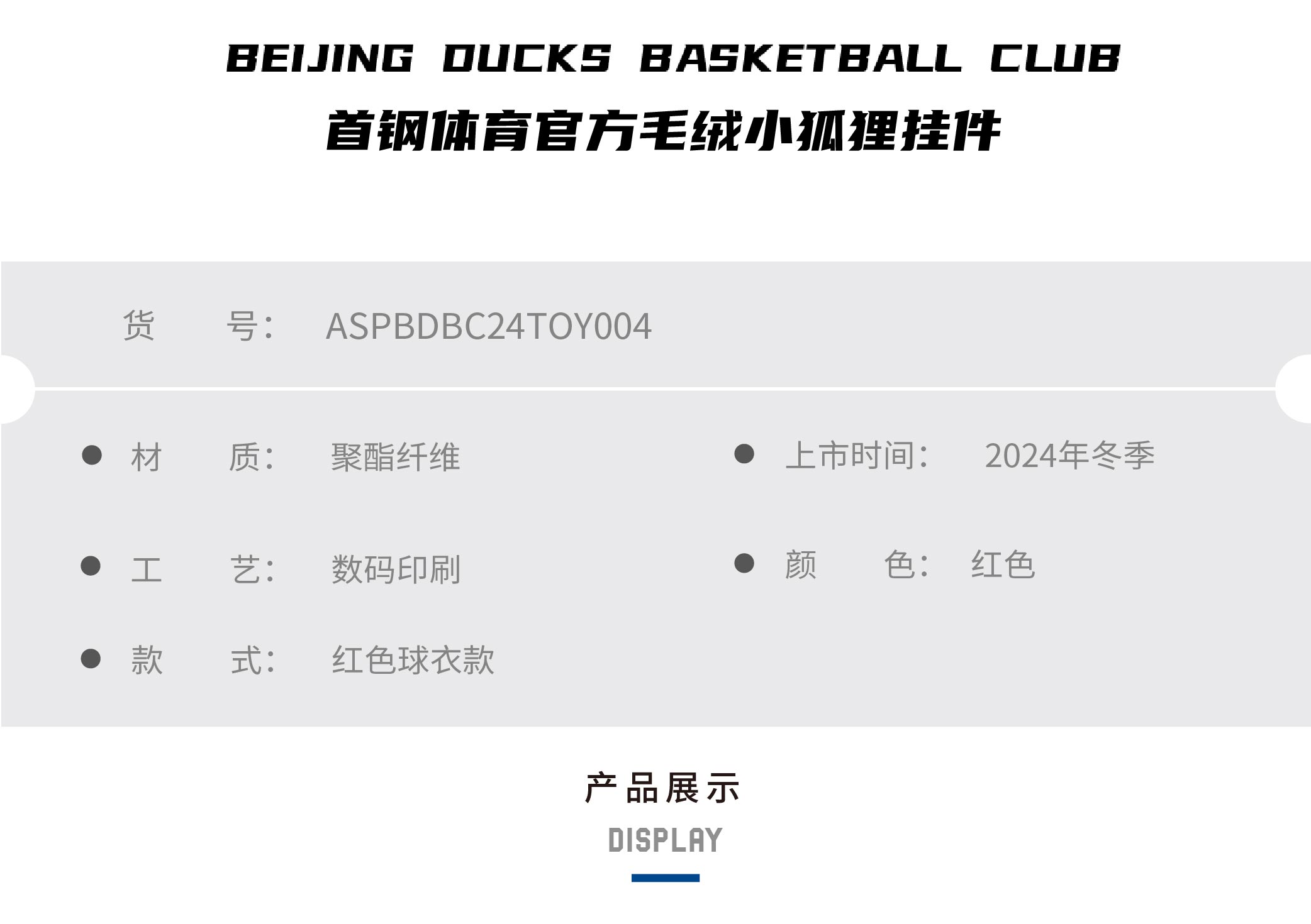 【官方正版】北京首钢篮球俱乐部 | 30周年纪念球衣狐狸挂件