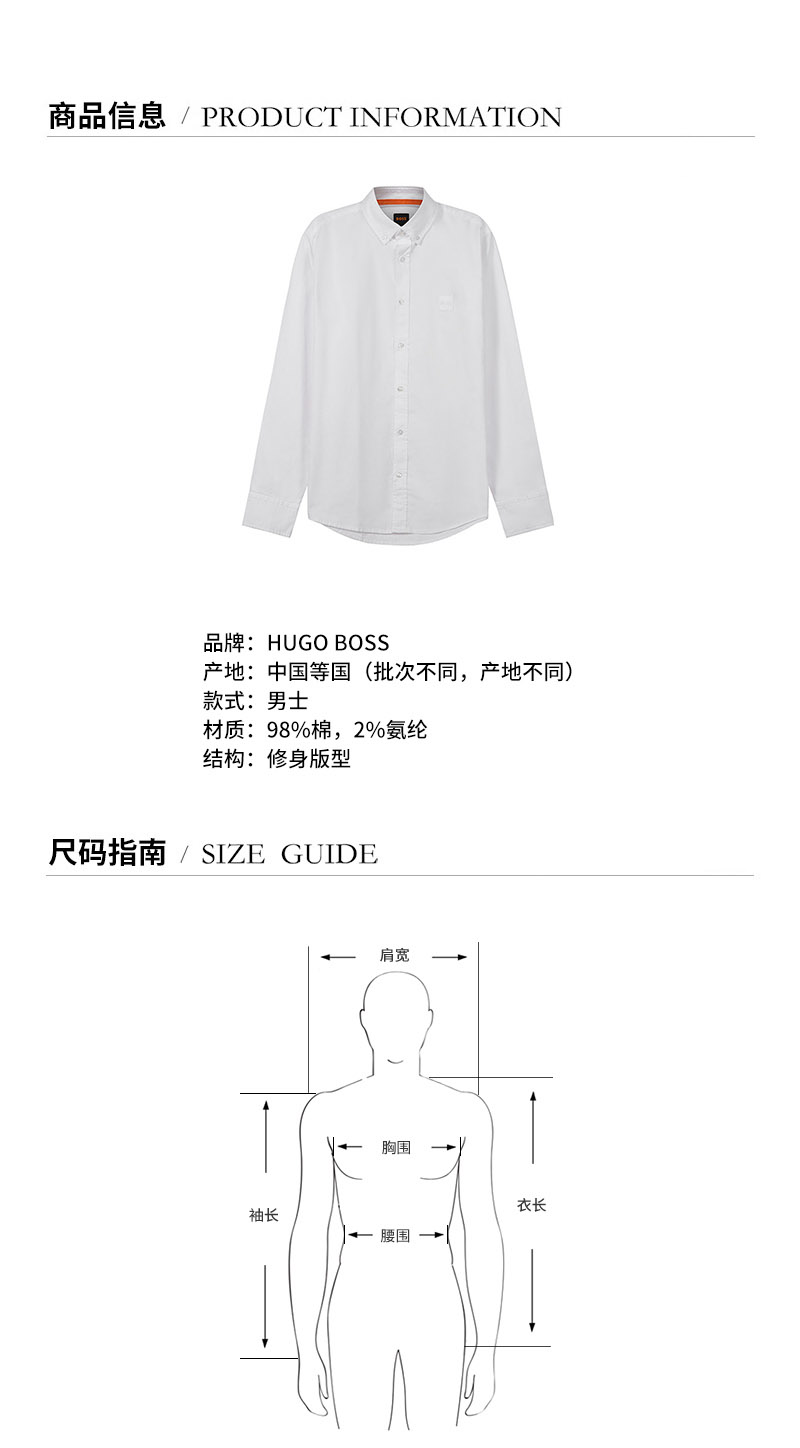 HUGO BOSS/雨果博斯【22春夏新款】男士棉质长袖衬衫 50467324