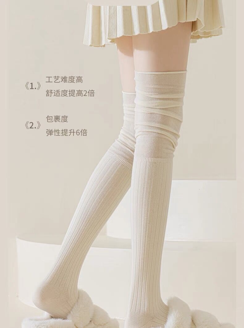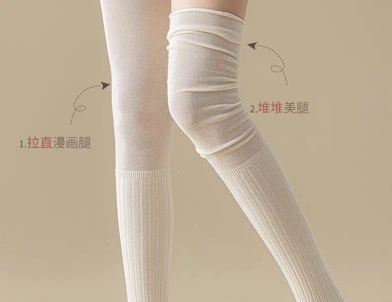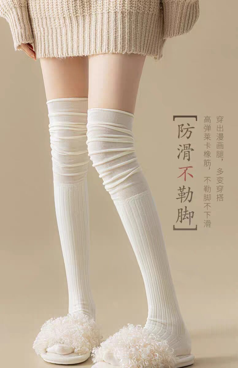 【不勒不下滑无束缚!过膝堆堆袜】春夏过膝堆堆袜长筒袜拼接过膝白色秋冬半筒袜ins潮长靴小腿袜女