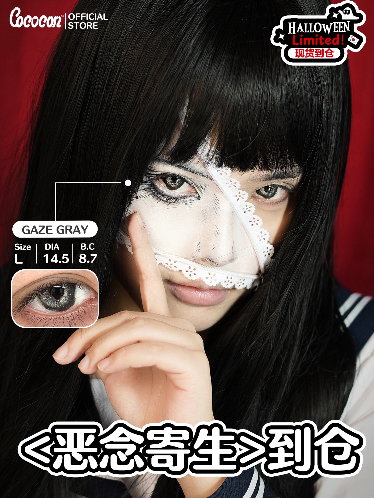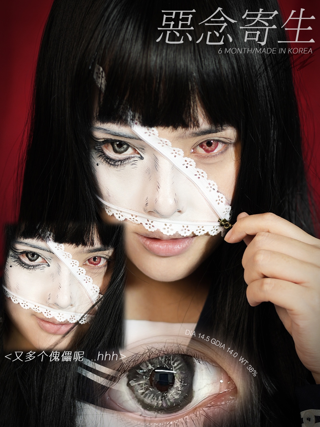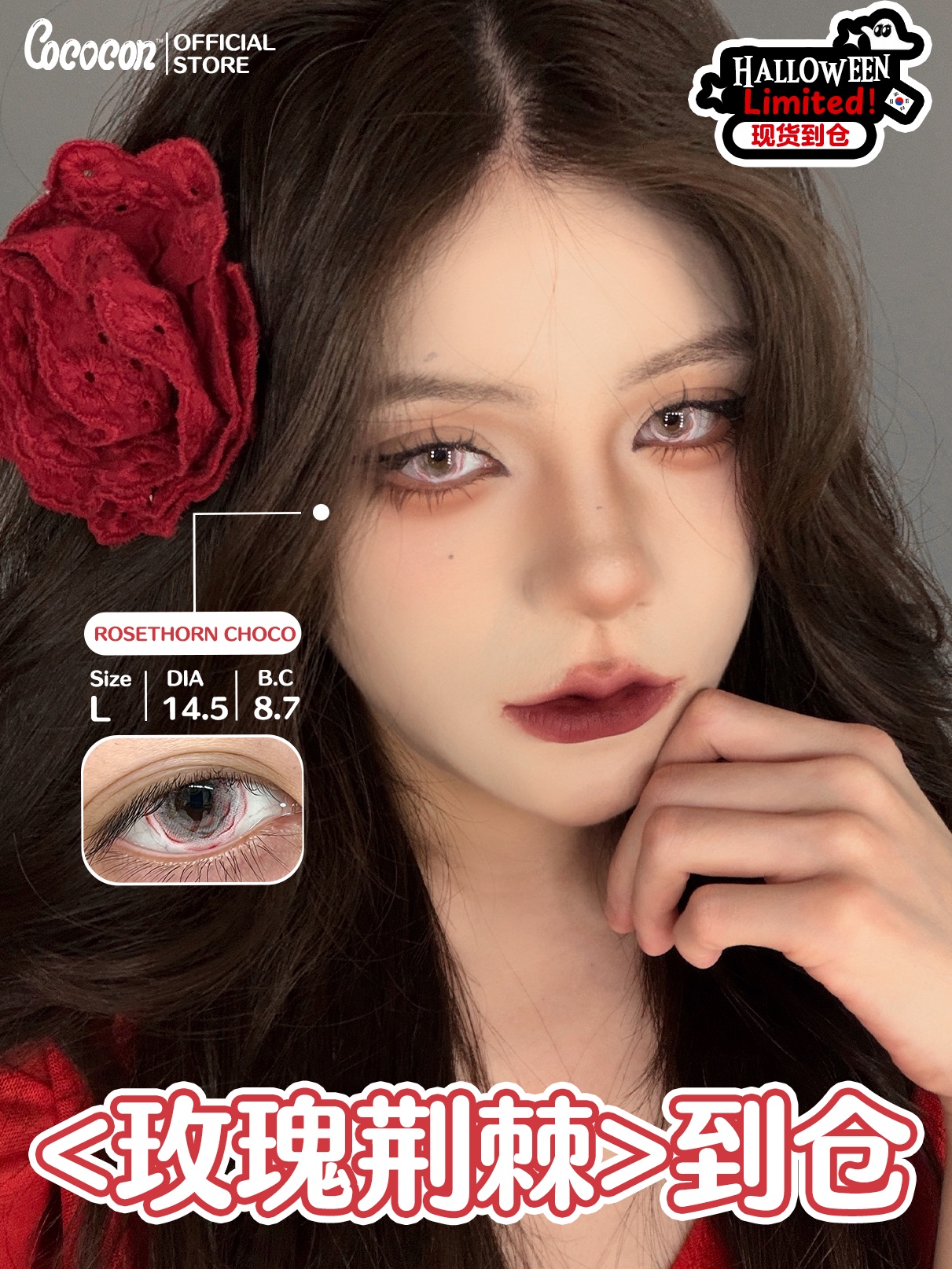 cococon半年抛 玫瑰荆棘/血蚀残瞳/恶念寄生 14.5mm cos混血万圣节 红色