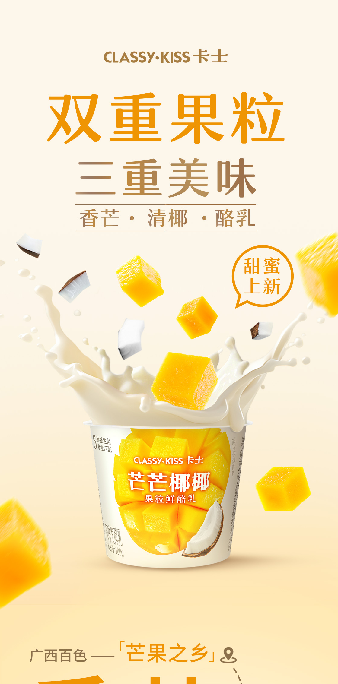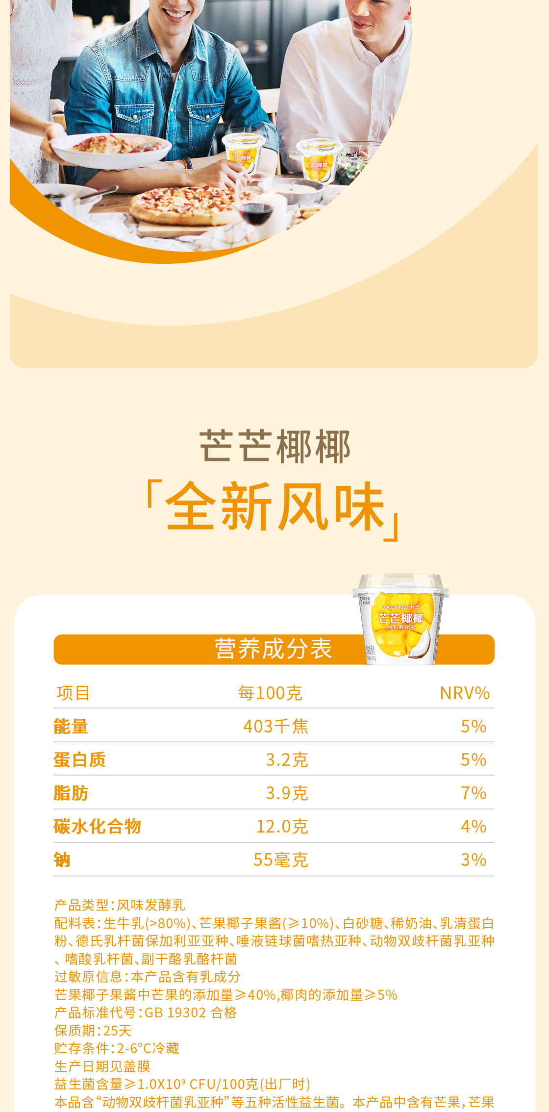【7天内发出,发出后不支持拦截退货】卡士 芒芒椰椰果粒鲜酪乳 100g*15/100g*18