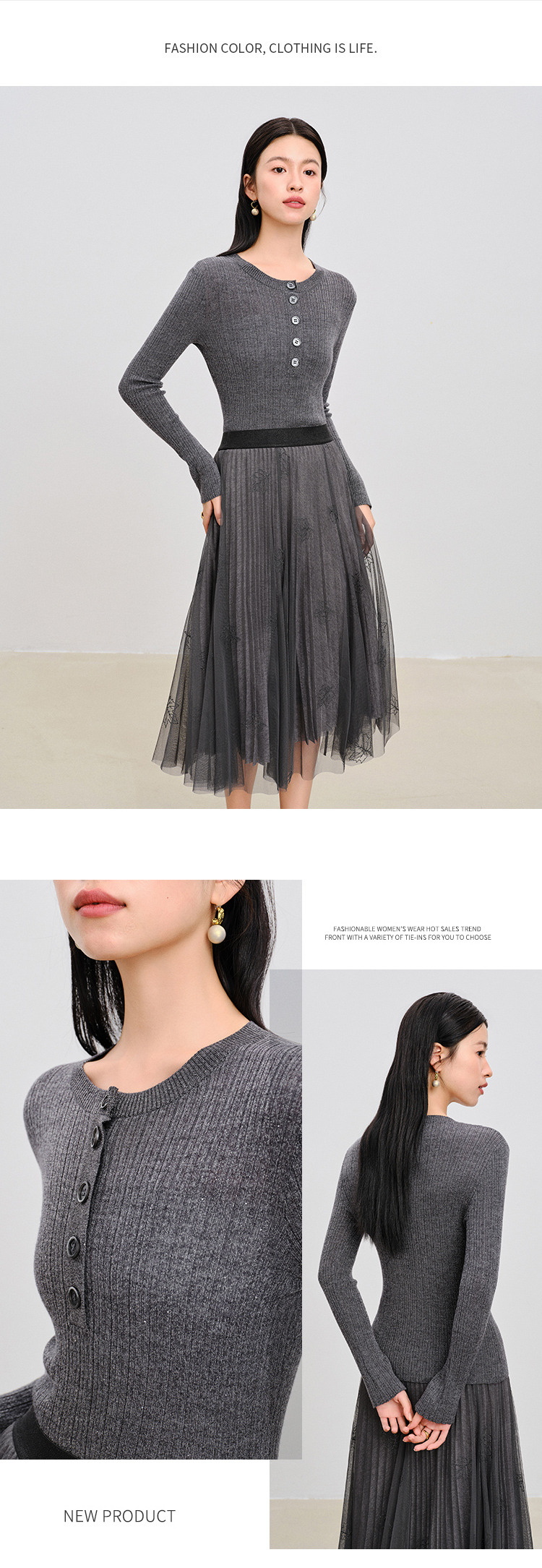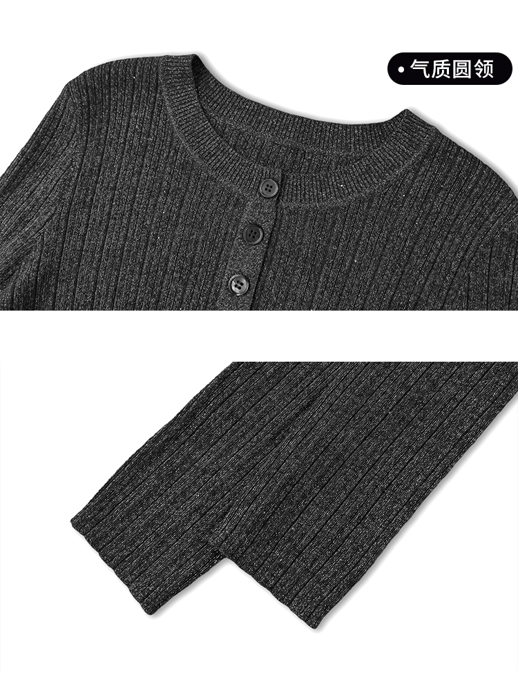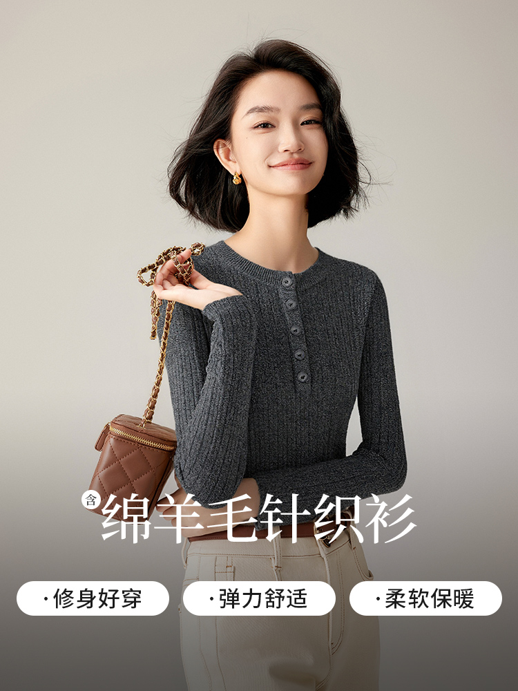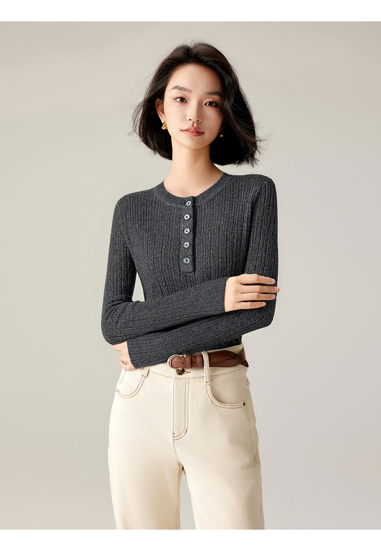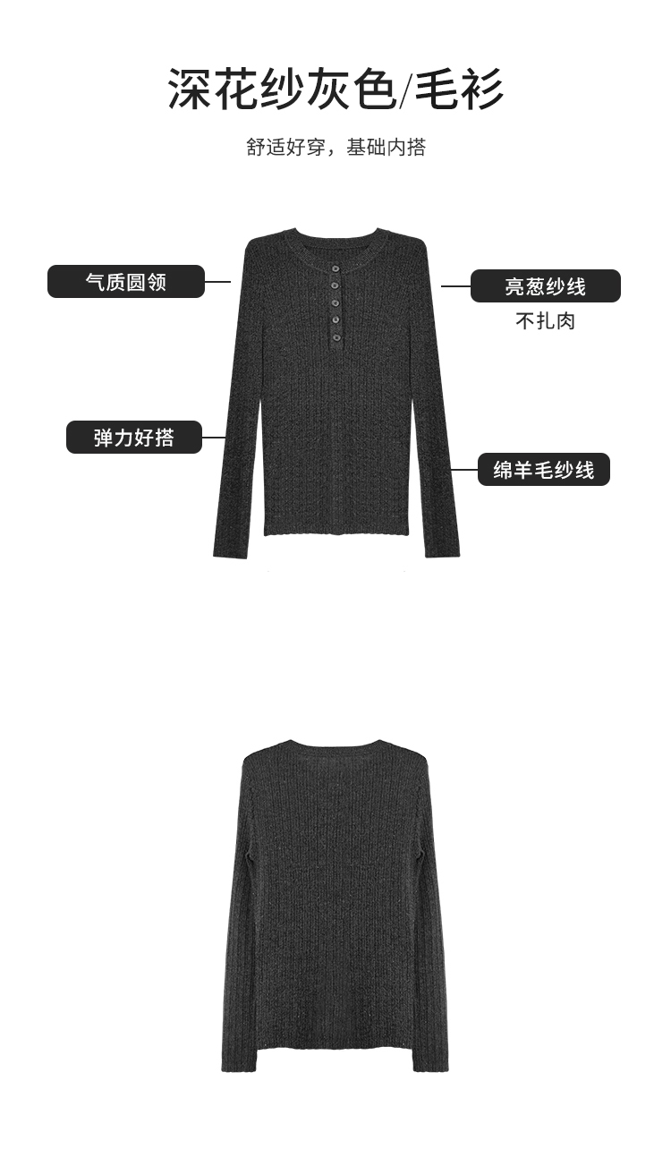 【商场同款】CNK4893“高智灰毛衫” 经典百搭直身型 套头毛衣 宽窄变化罗纹织法 弹力大 定染灰色纽扣 细节彰显品质 外穿内搭