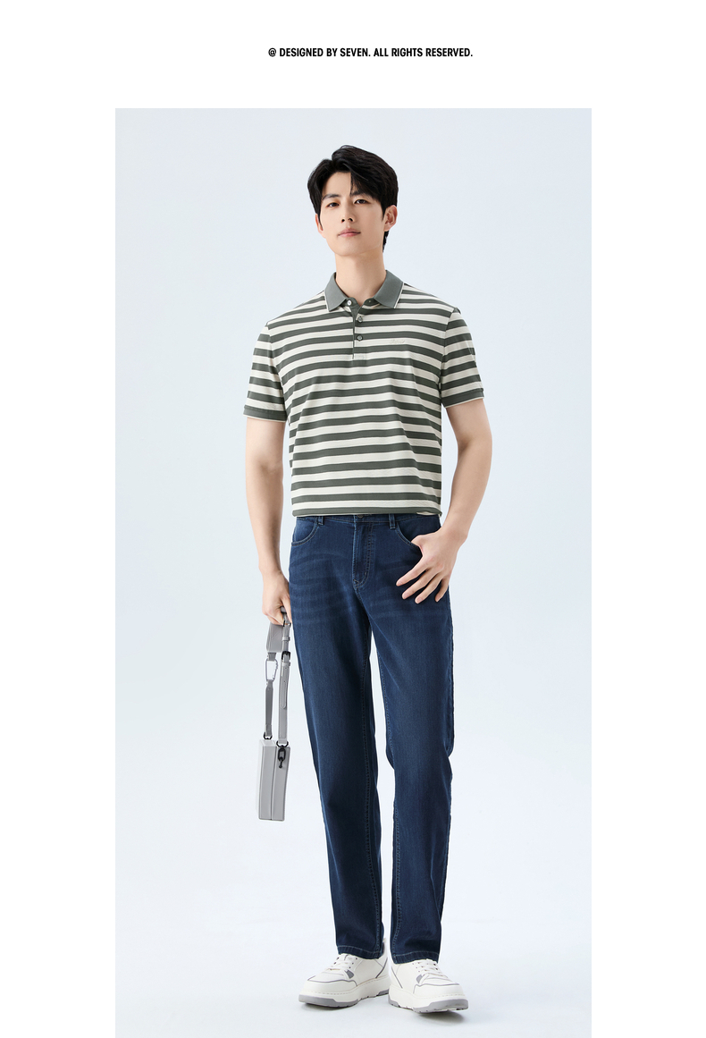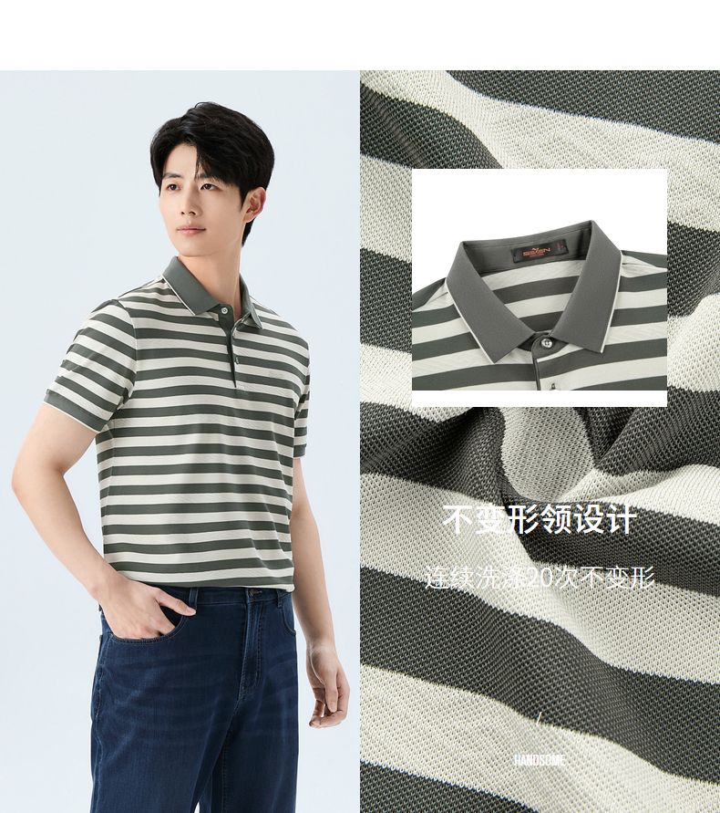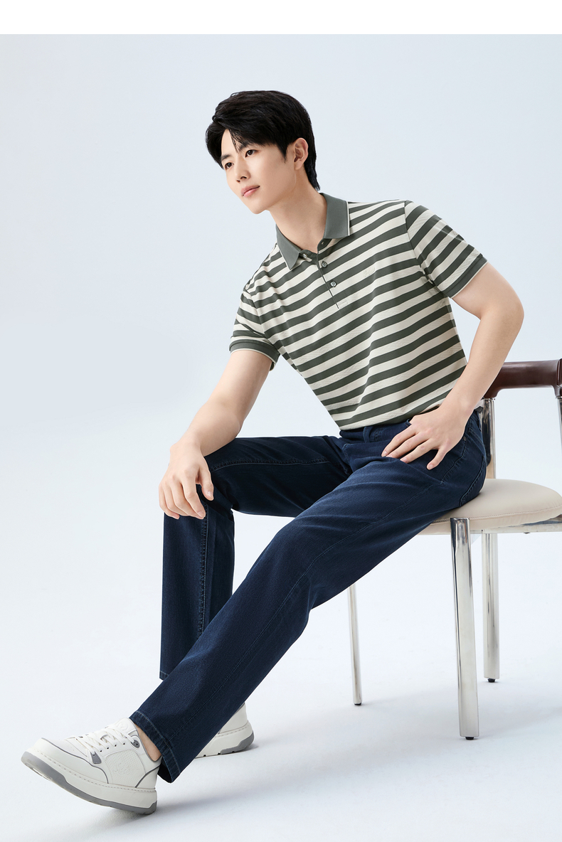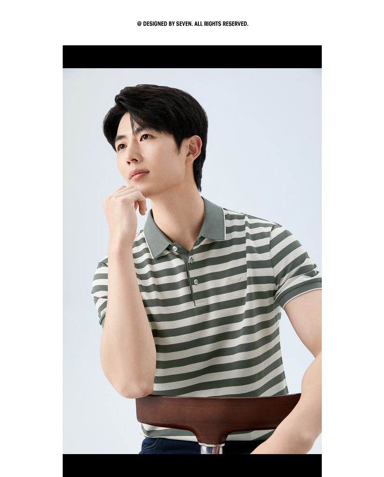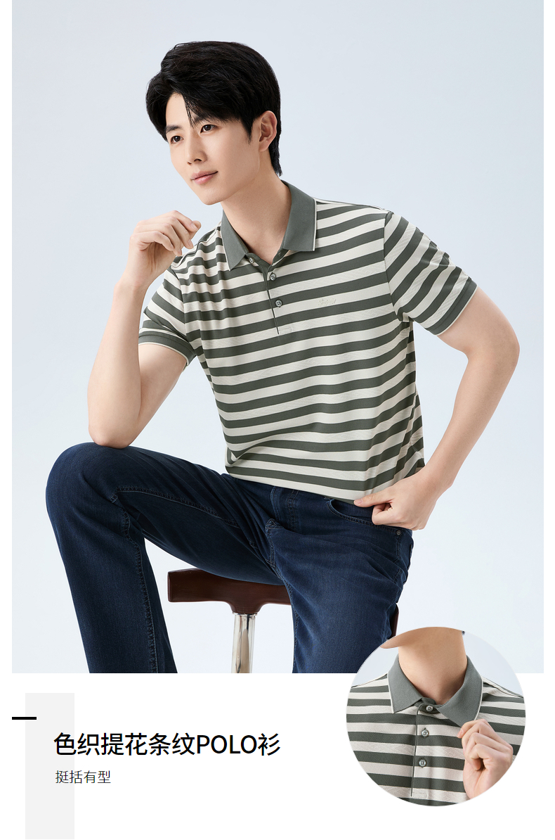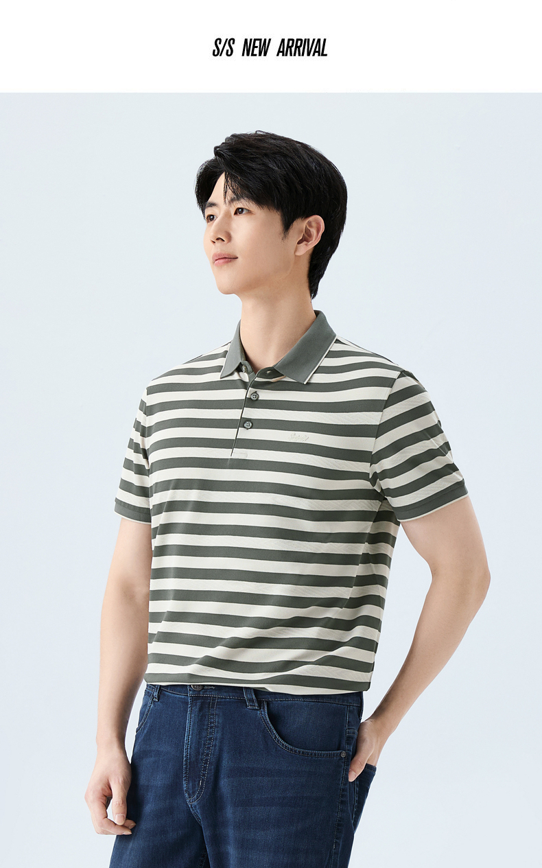 【条纹POLO衫】柒牌男装26夏上新短袖POLO衫柔软舒适男士上衣 130T70610