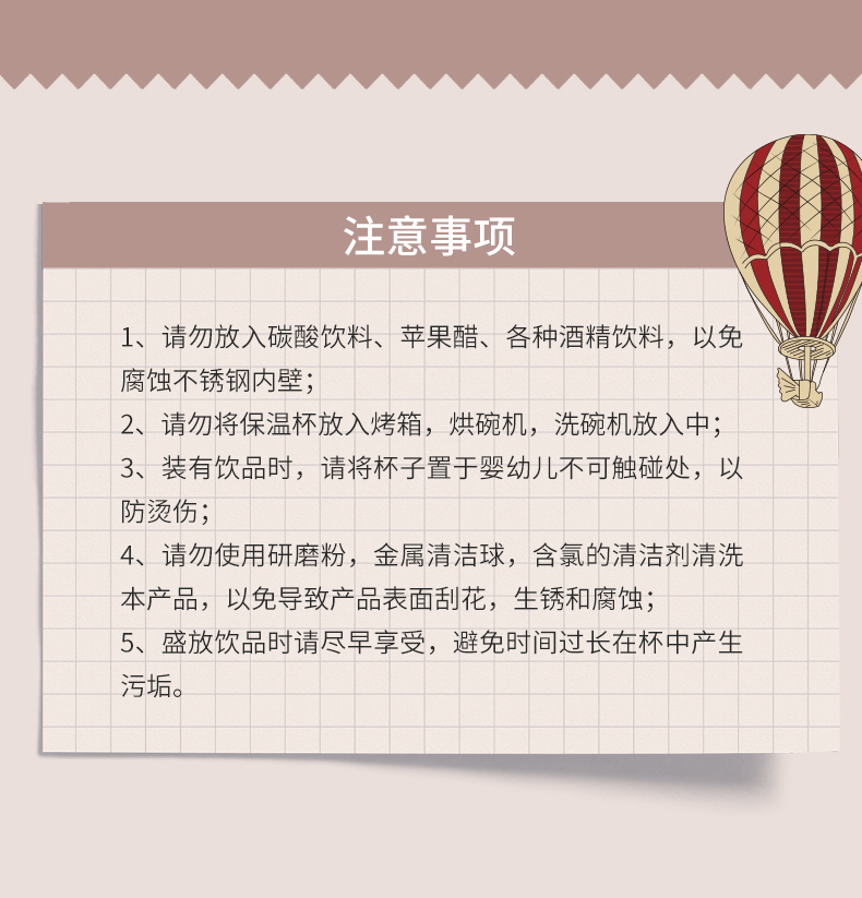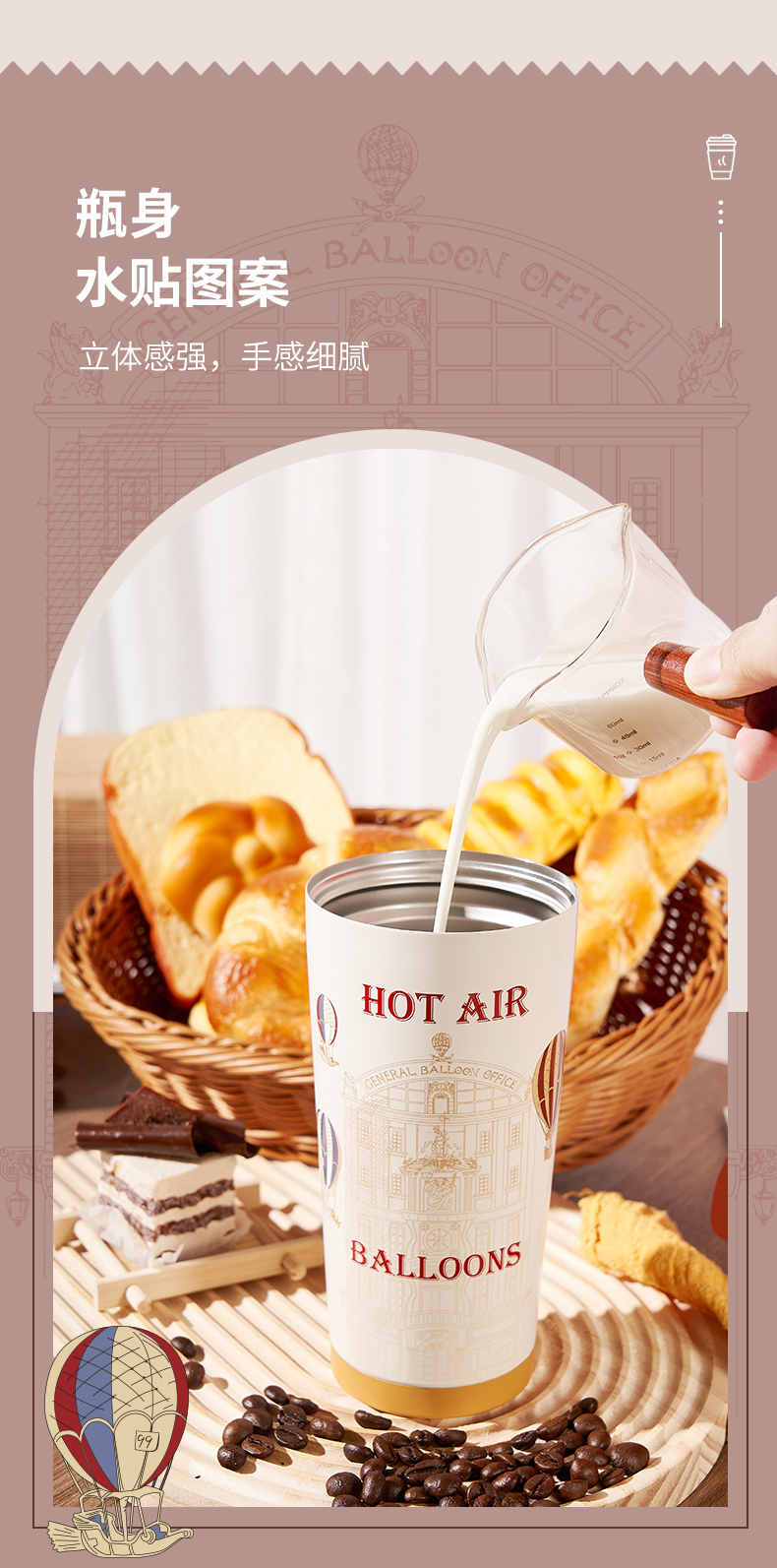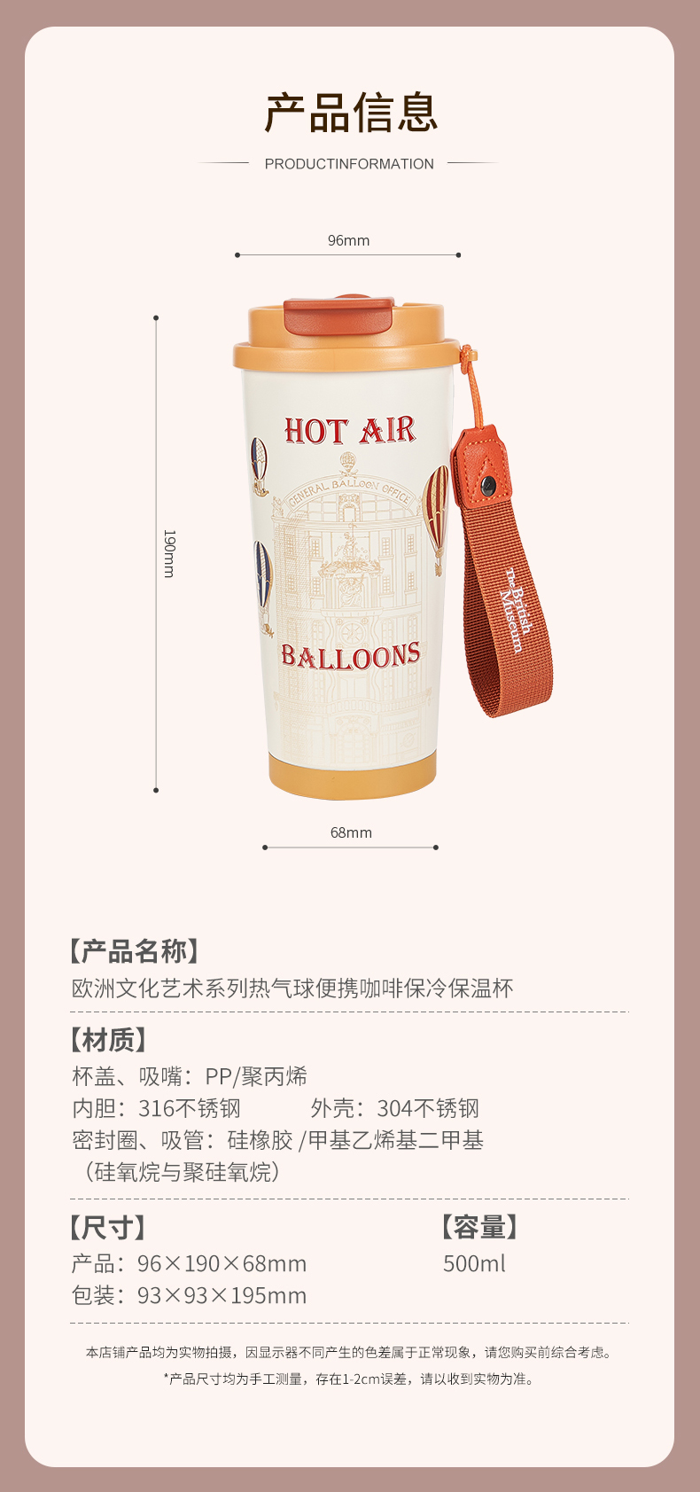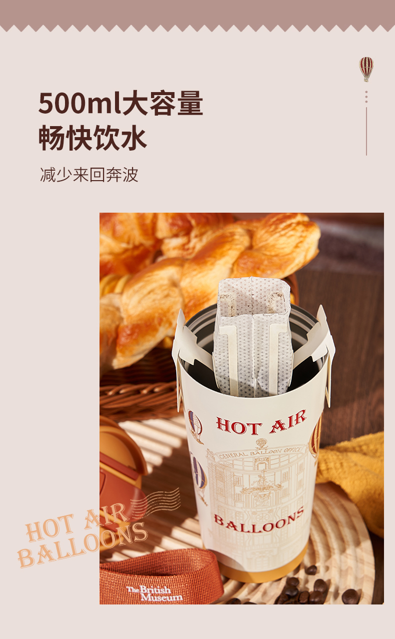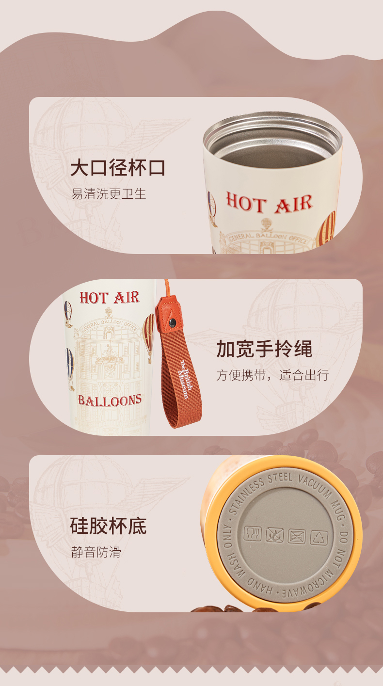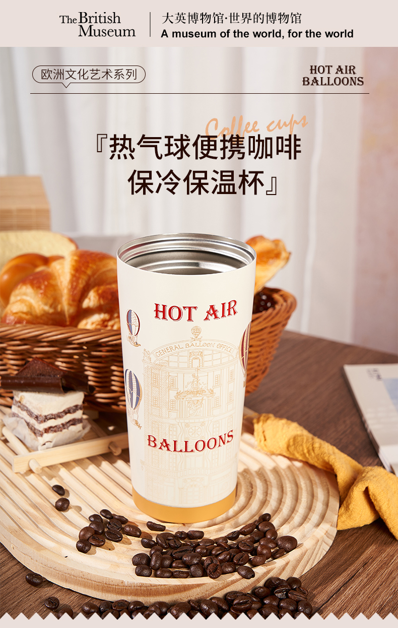 大英博物馆 欧洲文化艺术系列 热气球 便携咖啡 保冷 保温杯 内胆316不锈钢 外壳304不锈钢 容量500ml