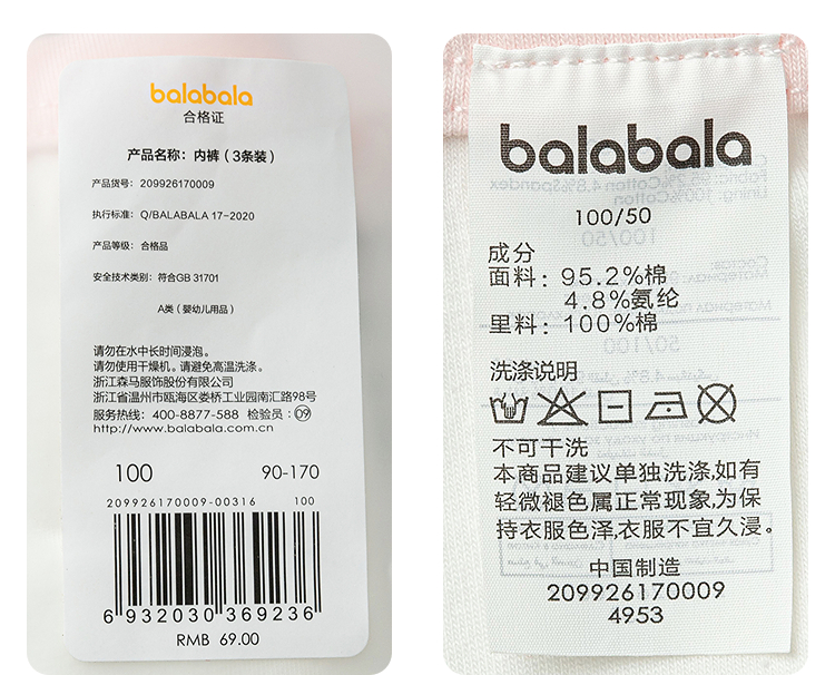 【balaOne】巴拉巴拉宝宝内裤平角纯棉儿童四角短裤女童三条装
