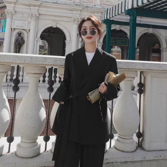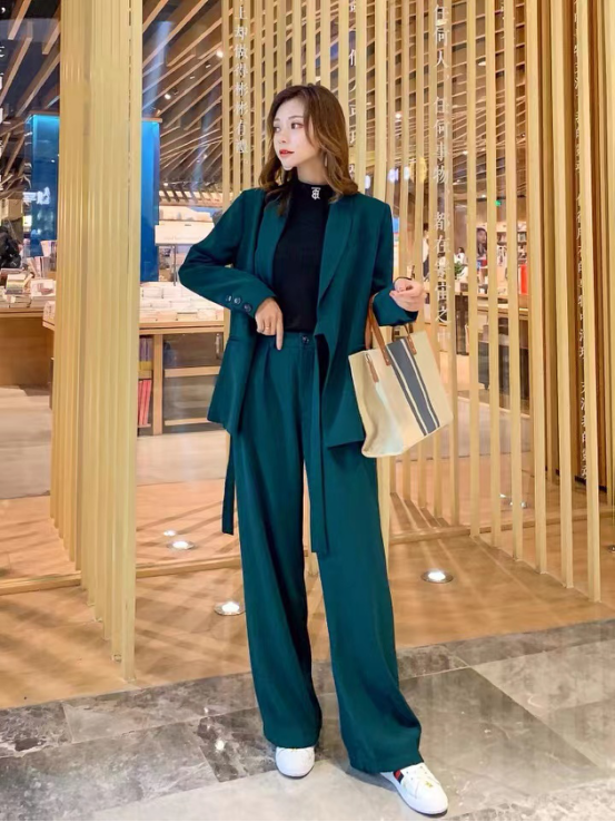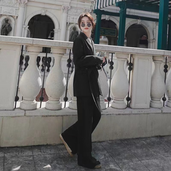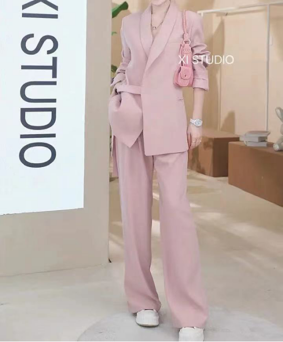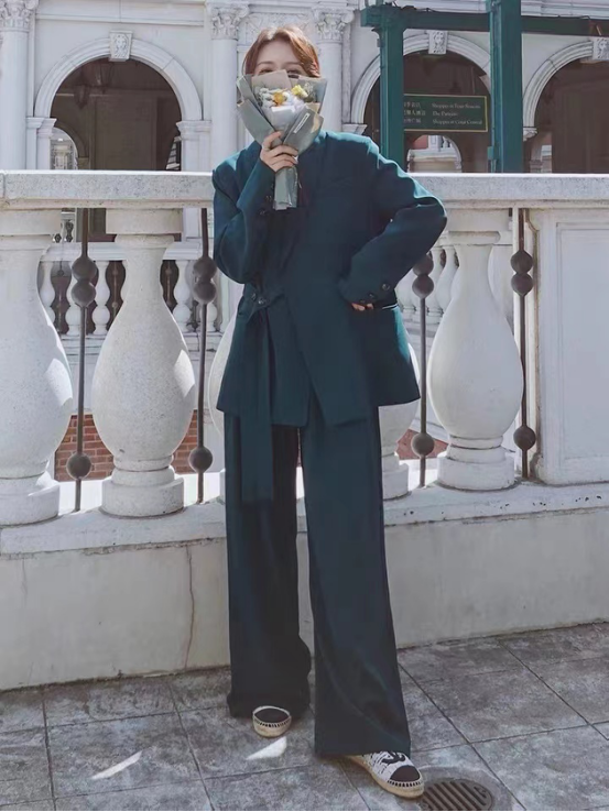 而且西装+阔腿裤有搭配好的套装,女孩子选择套装穿不仅很有整体性,看上去精致优雅,而且还少了一些搭配的烦恼。很多女孩子其实在穿衣搭配上还不算特别出众,对于选款和选色还存在偏差。