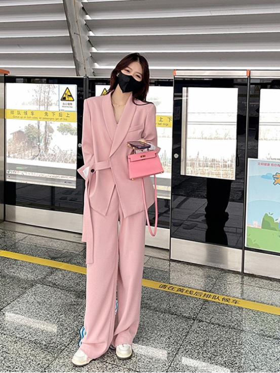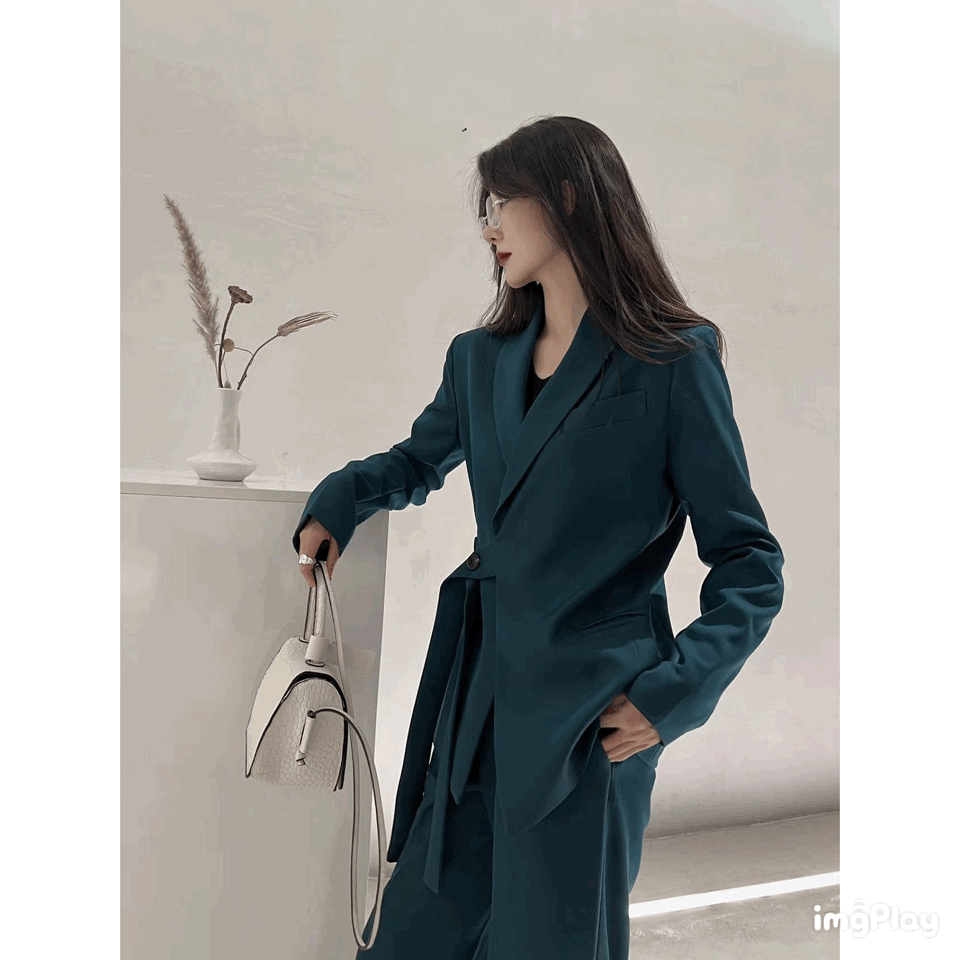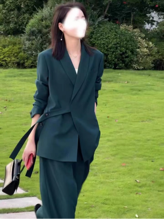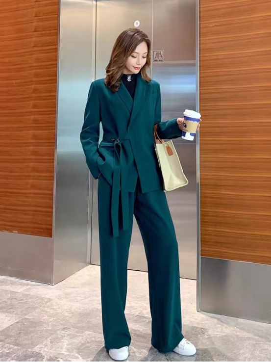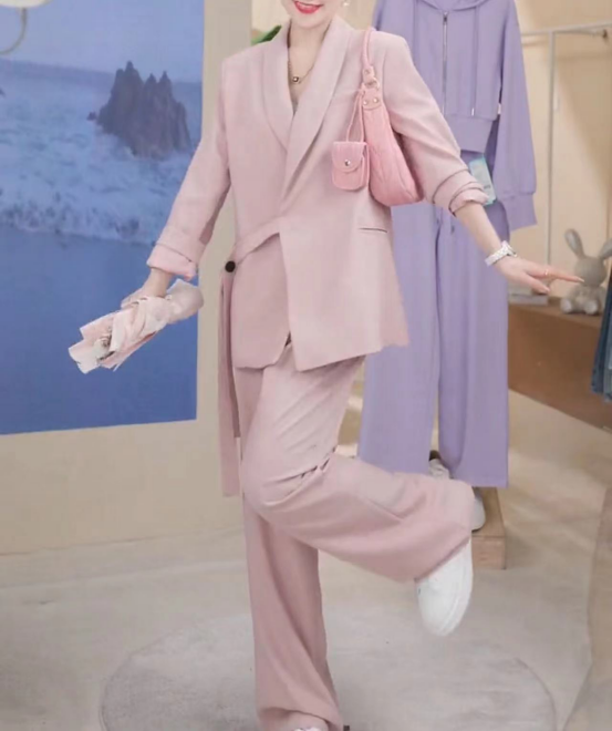 【品名】YiLin怡琳春季西装阔腿裤套装