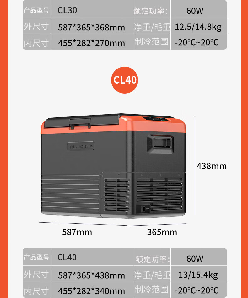 冰虎(Alpicool)压缩机制冷CL40车载冰箱房车12V24V车家两用冷冻冷藏大货车