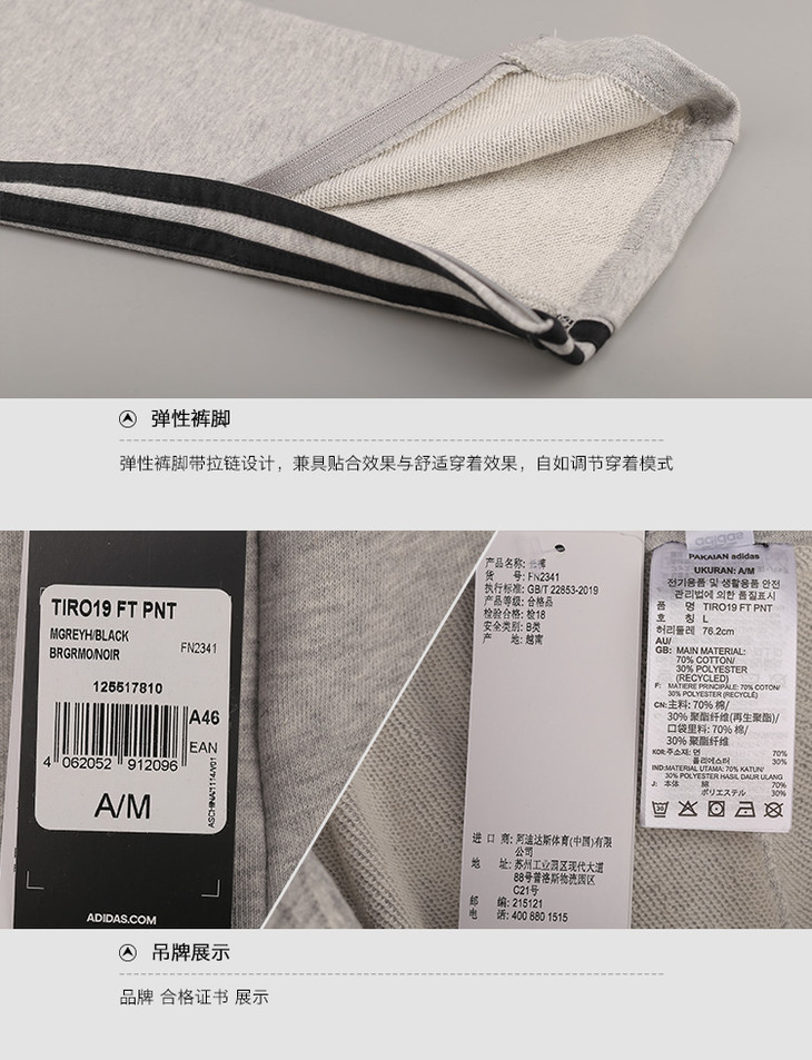 ADIDAS/阿迪达斯 运动训练足球热身收腿长裤FN2341