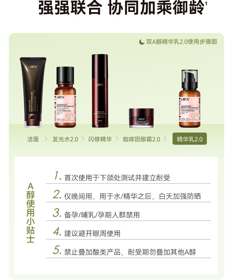 【品牌直发】HBN早C晚A水乳套装2.0(发光水100ml+精华乳120ml)