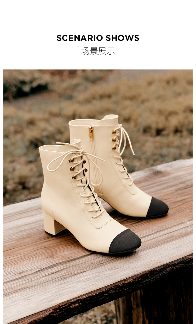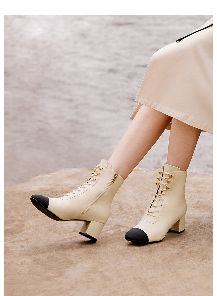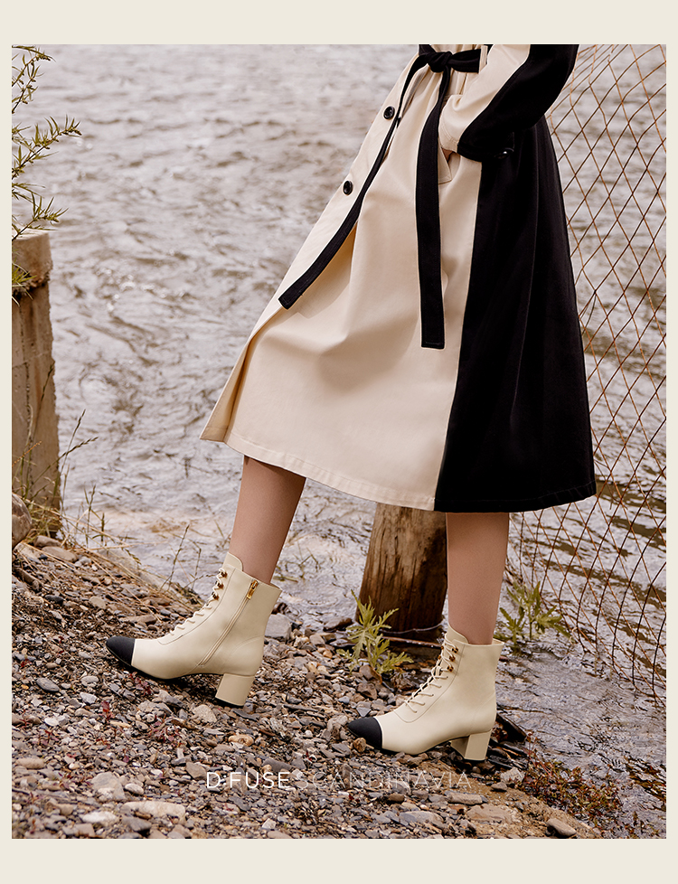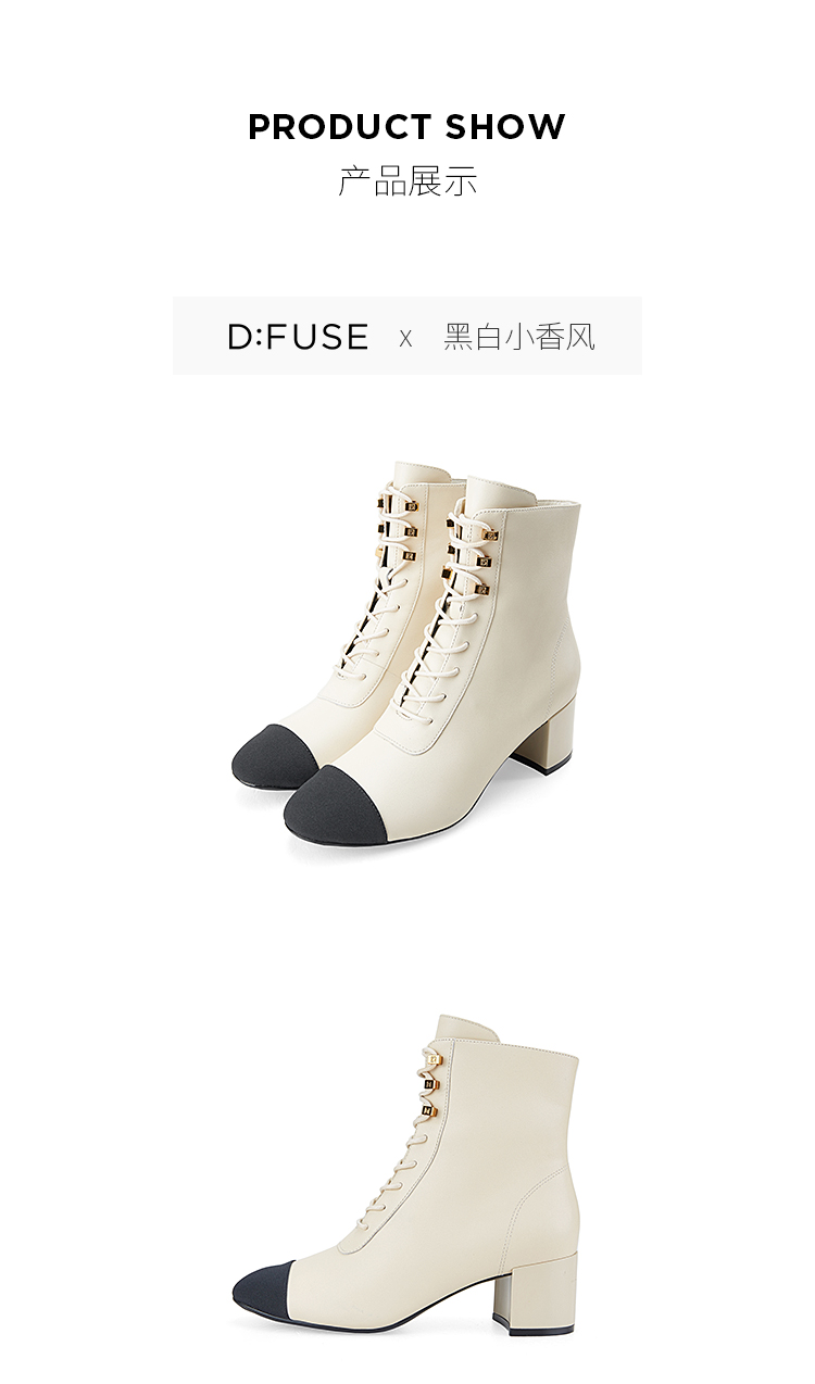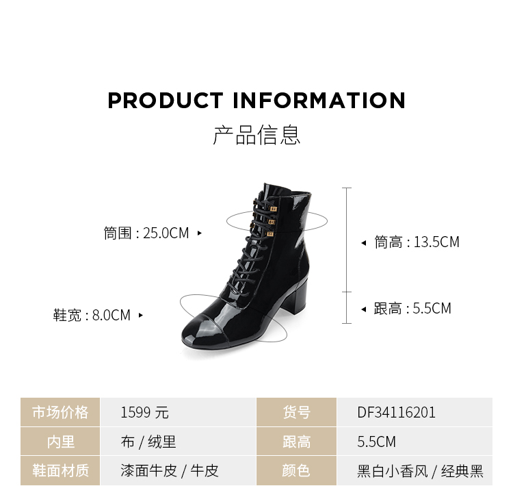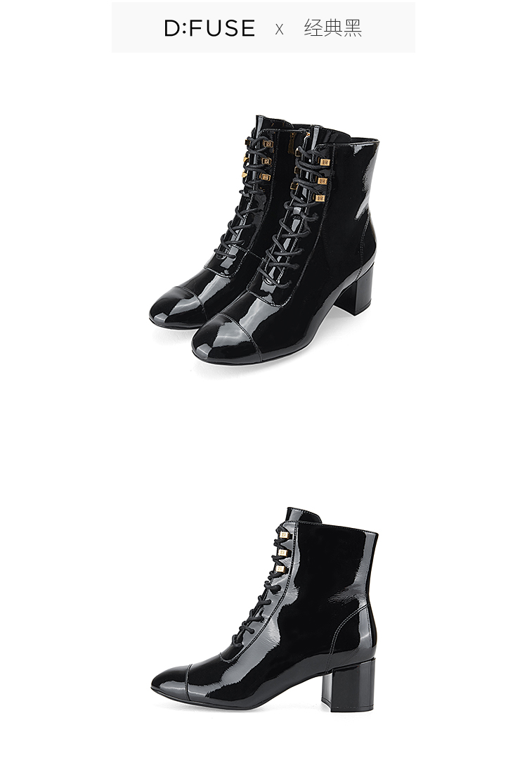 Dfuse迪芙斯冬季新款牛皮方头粗跟绑带马丁靴短靴DF34116201