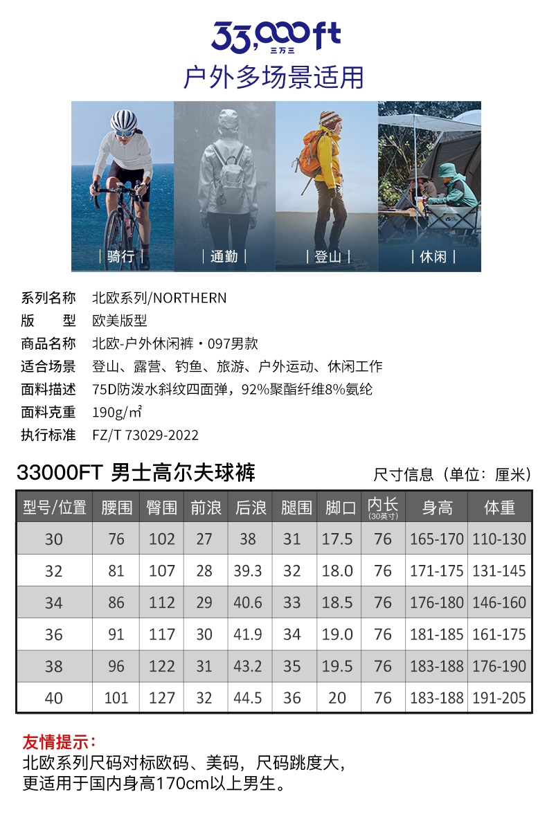 33000ft户外休闲男裤防晒速干透气吸汗运动长裤春夏休闲舒适弹力裤