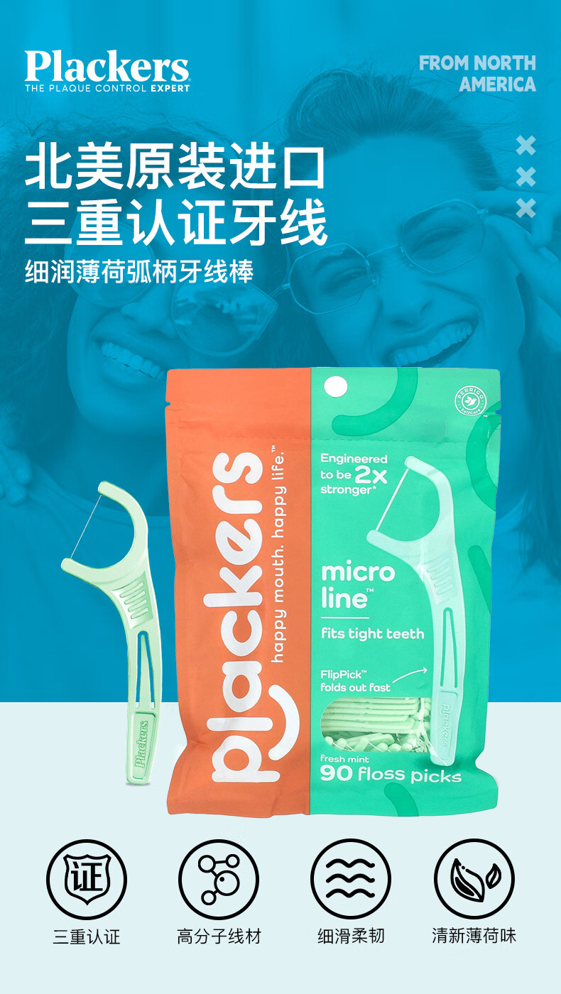 Plackers薄荷味成人牙线家庭装90支/袋