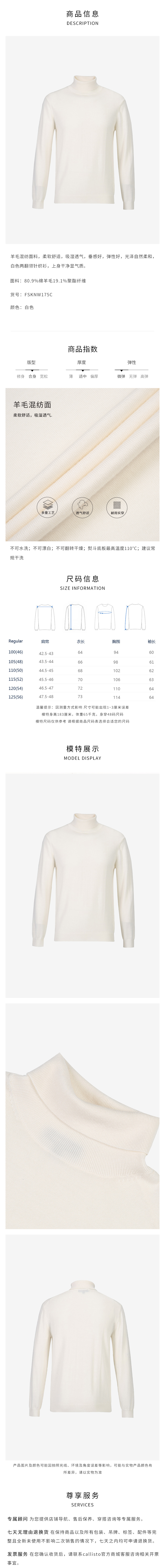 callisto白色两翻领羊毛混纺高领针织衫 FSKNW175C WH