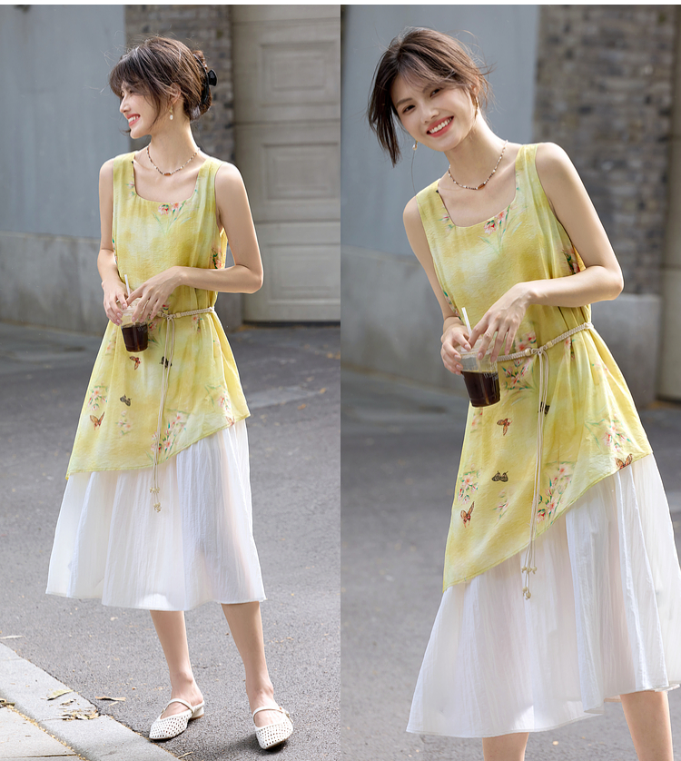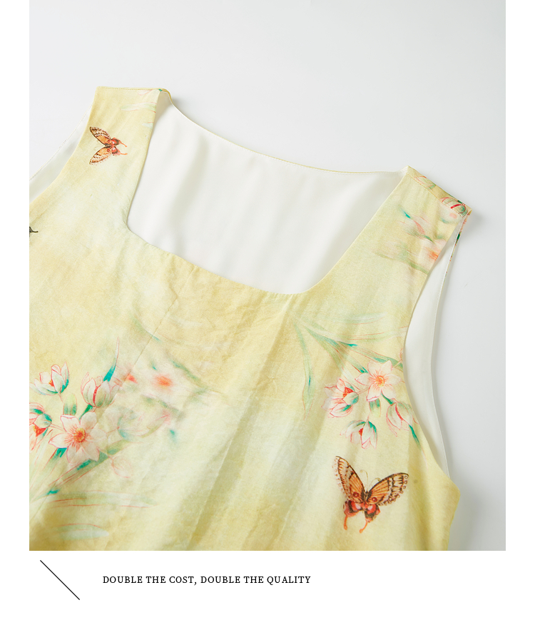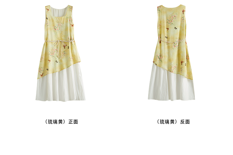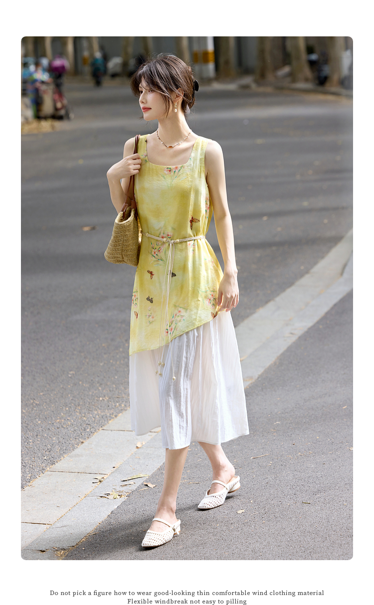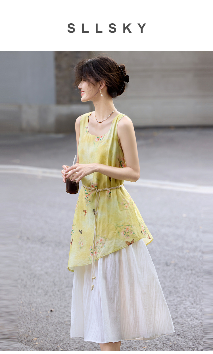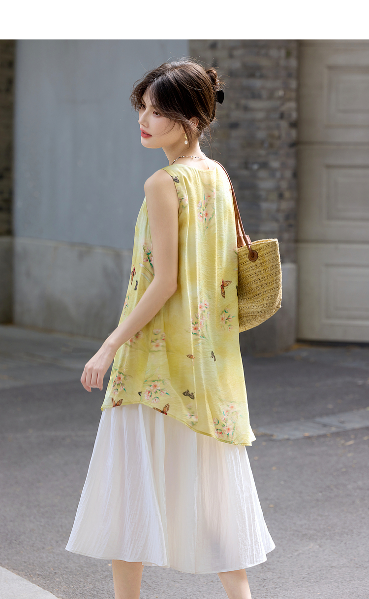 【周末秒杀】熙世界「碟恋花」轻国风假两件印花方领背心连衣裙女2025夏季新款