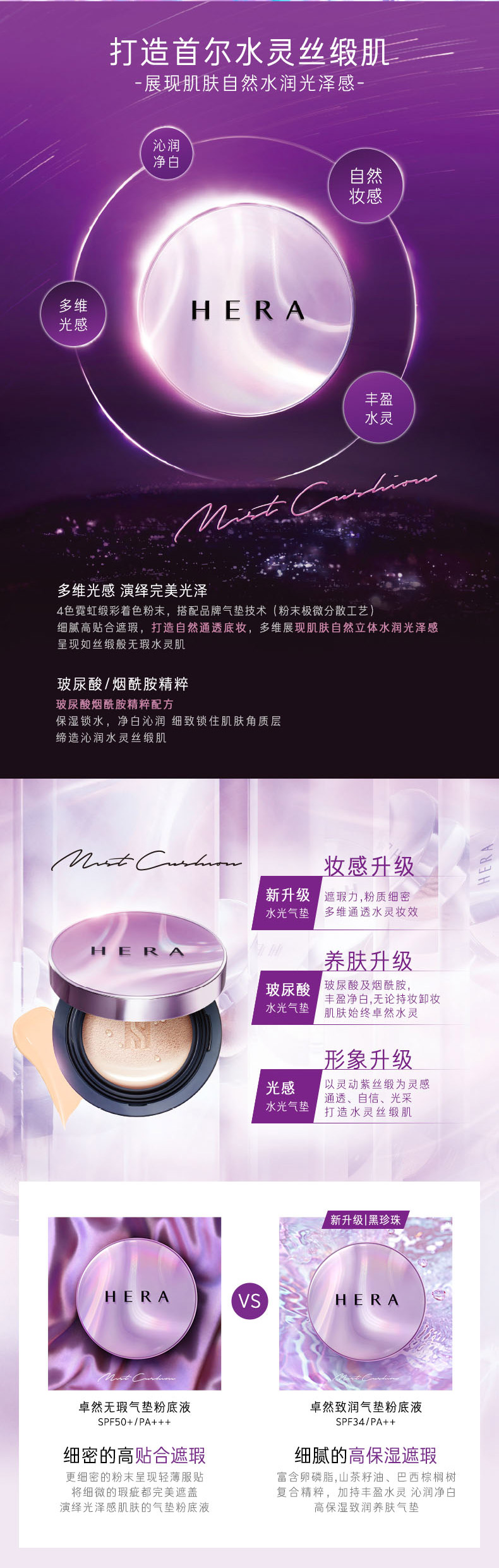 韩国HERA赫妍卓然无瑕致润气垫粉底液bb霜遮瑕保湿防晒持久