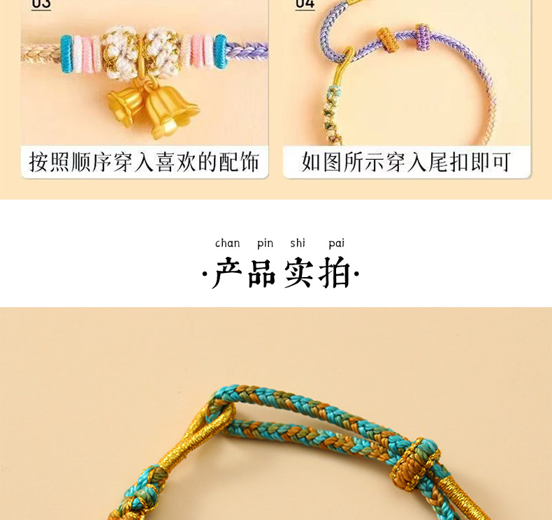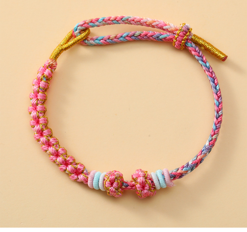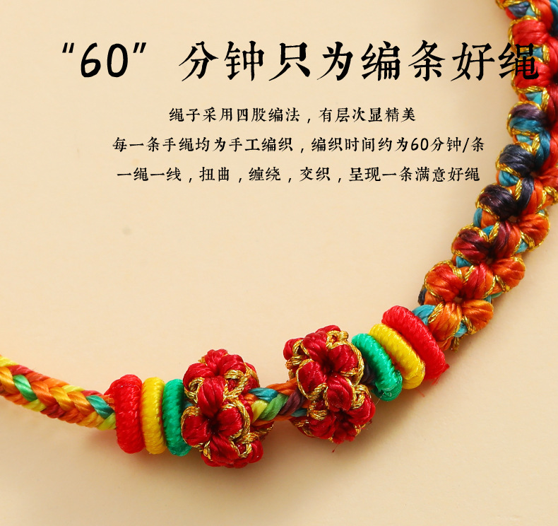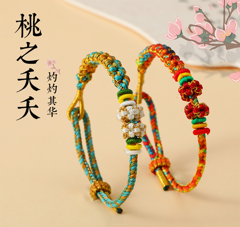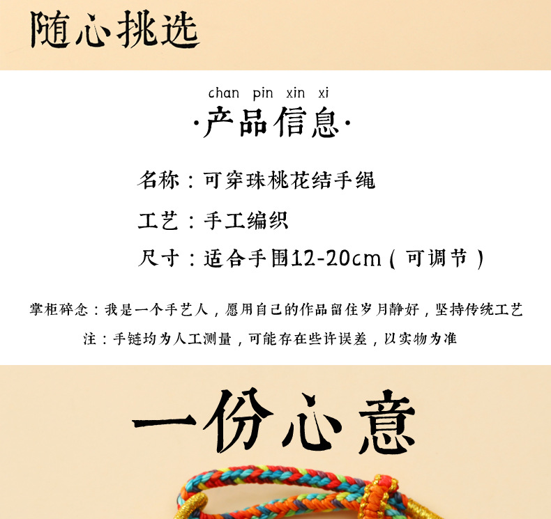 【端午节桃花结手绳】男女diy半成品 可穿珠配饰手链 十里桃花五彩手绳