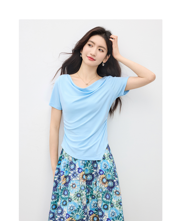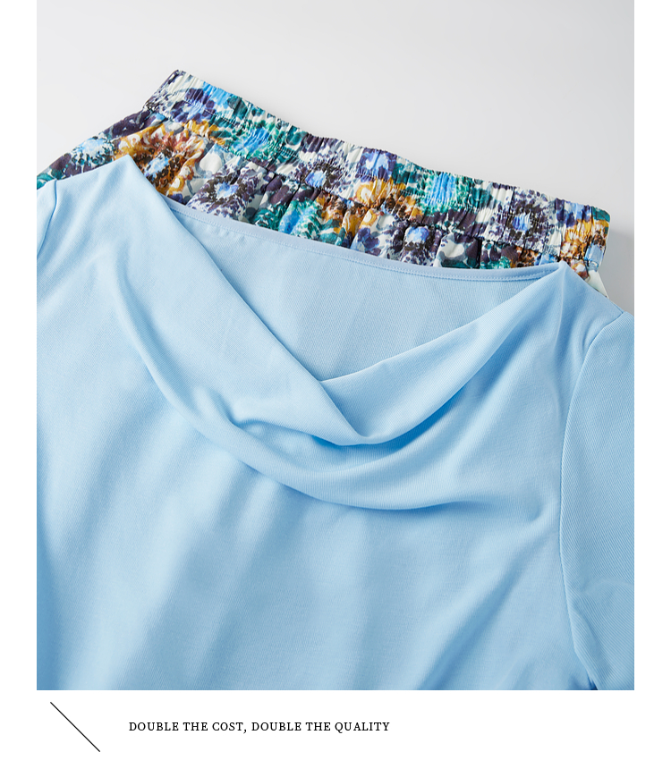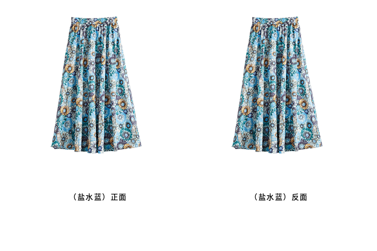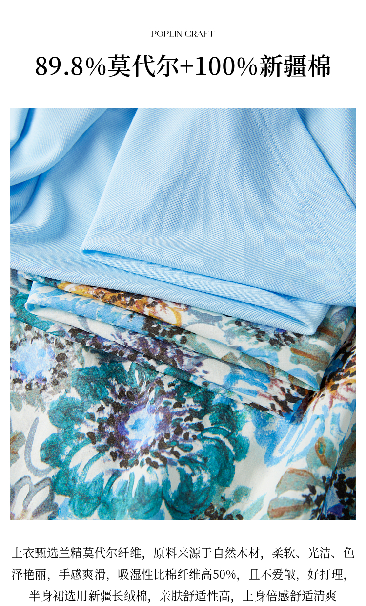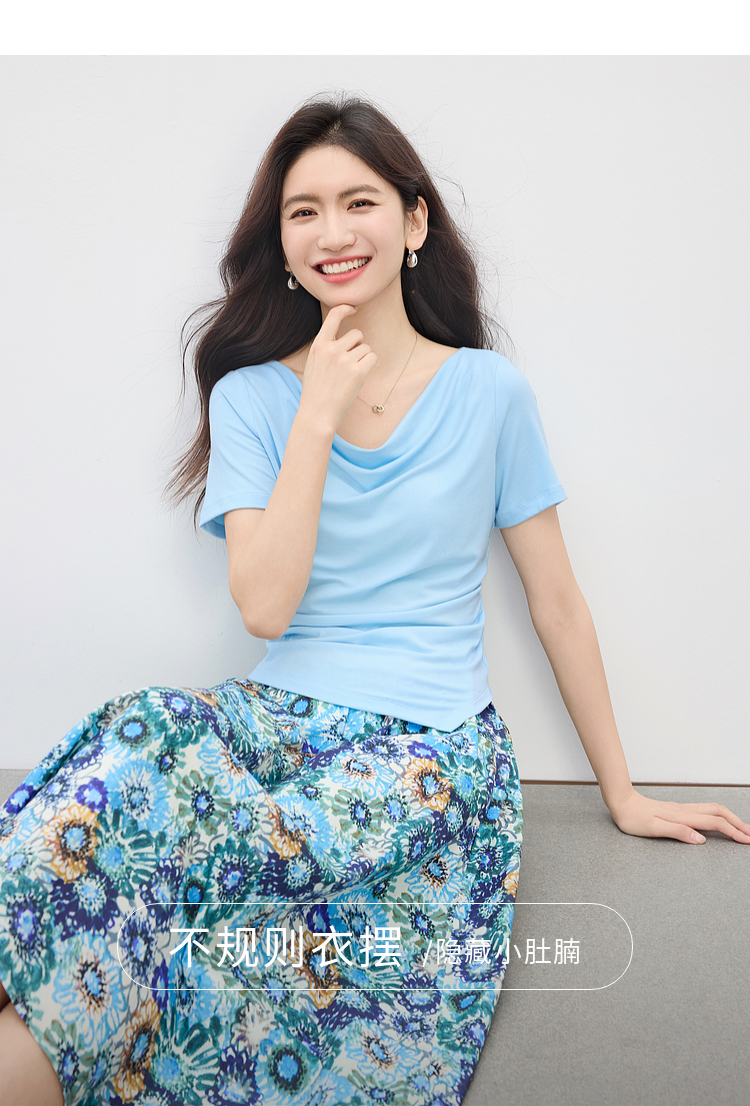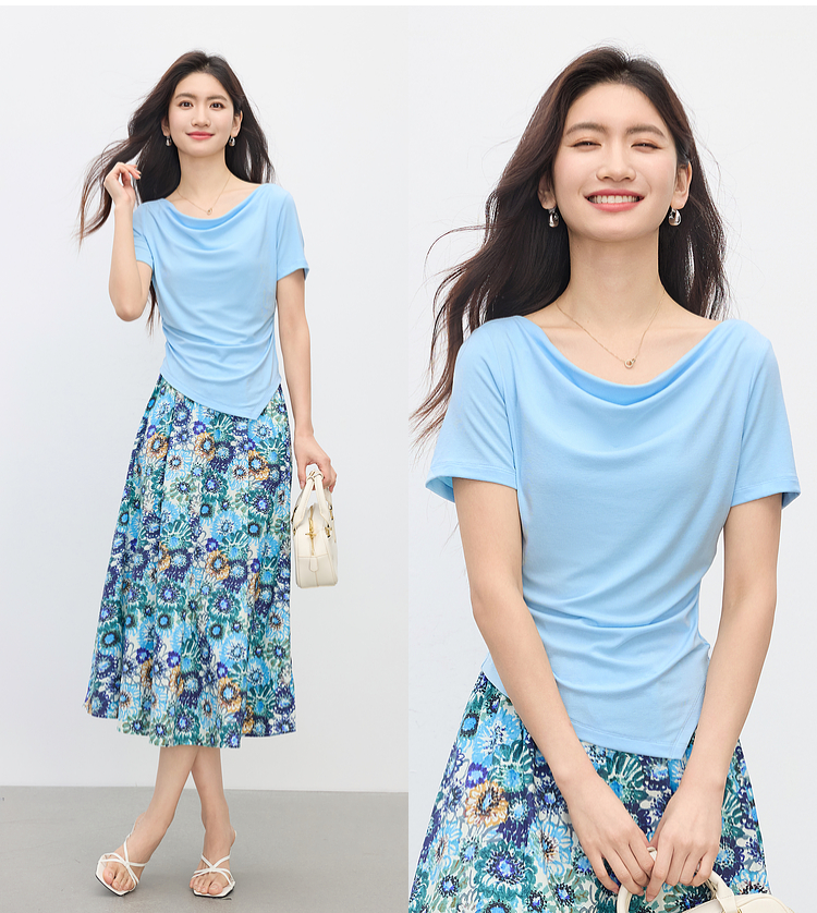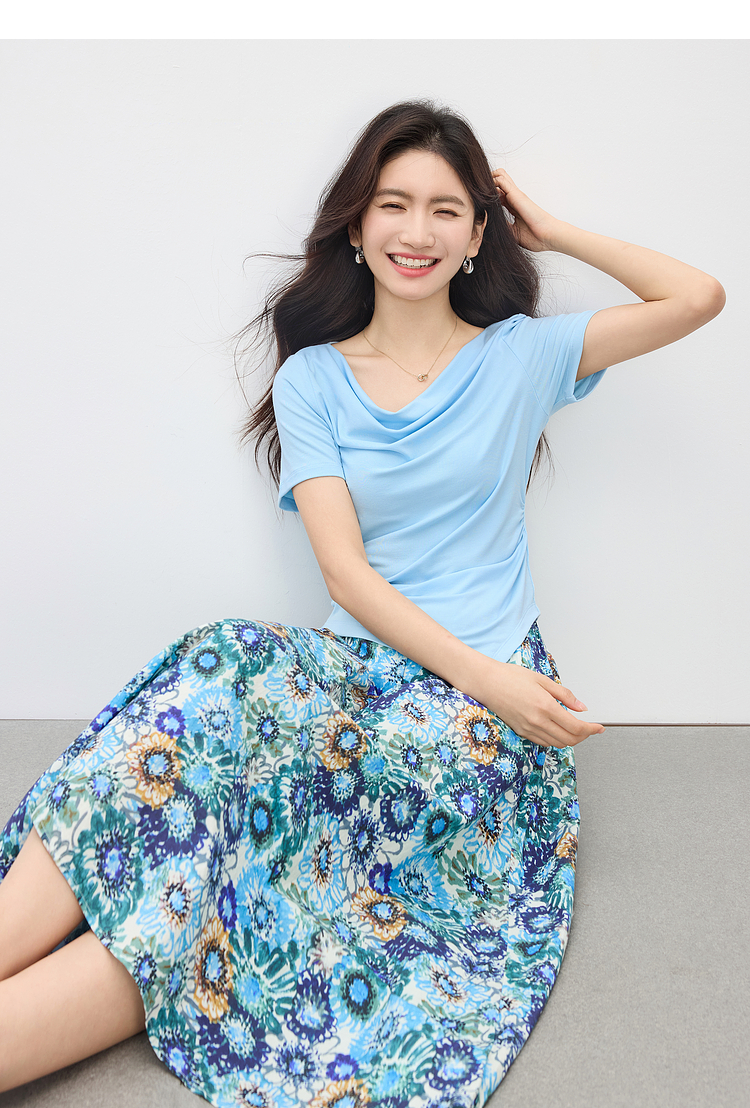 【专属特价】熙世界独特绝美夏天小套装女新款荡领T恤复古碎花半身伞裙两件套