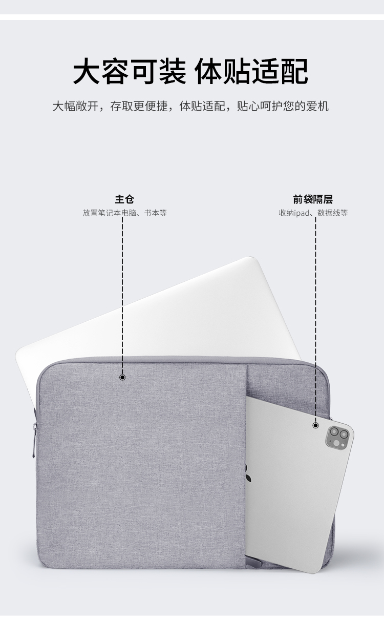 BUBM 苹果小米联想13.3air pro英寸笔记本电脑包女商务内胆包男华硕戴尔保护套薄公文FMBD 13.3英寸灰色