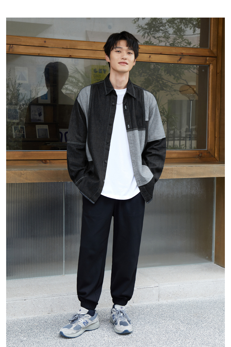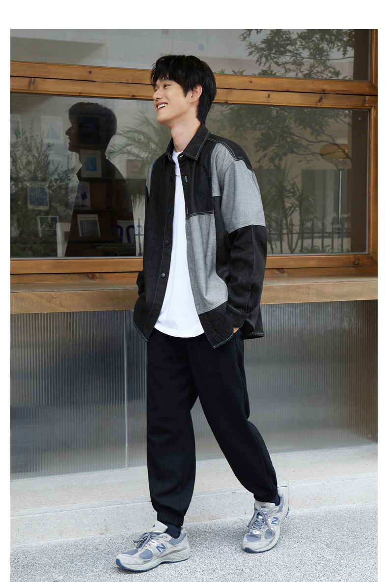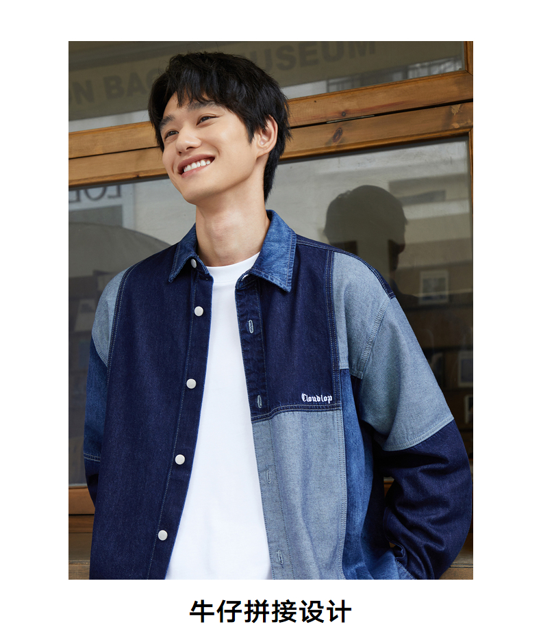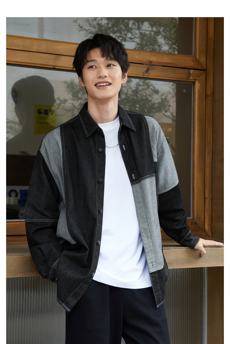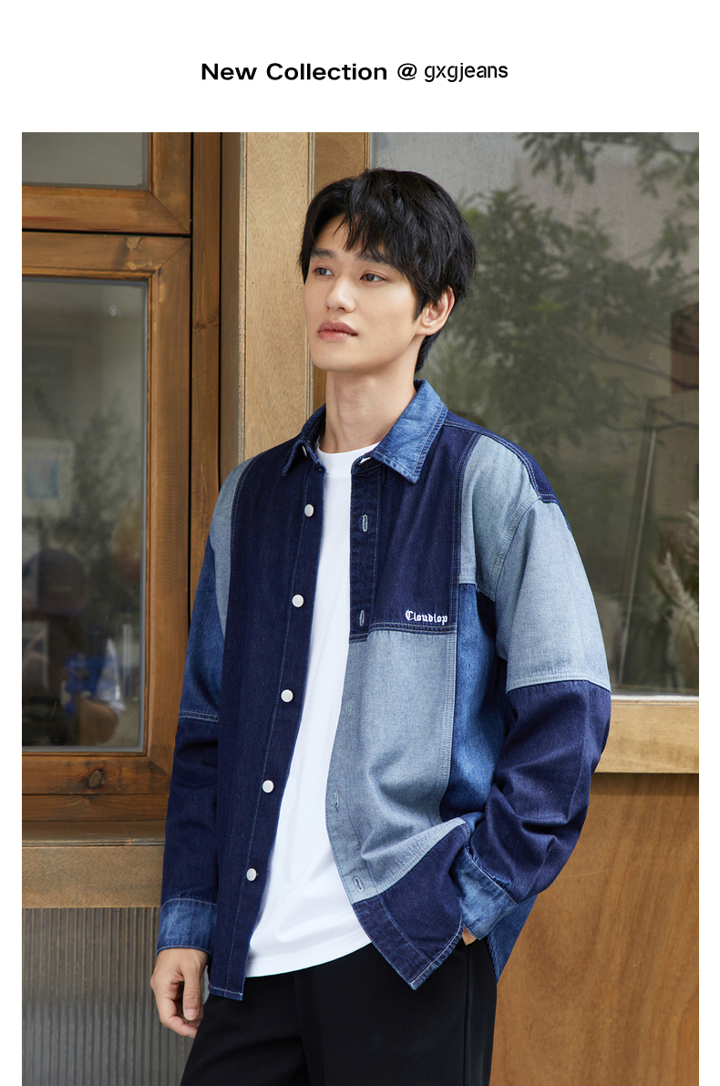 gxgjeans男装 秋季翻领拼接夹克长袖宽松牛仔夹克外套男JED1E808644