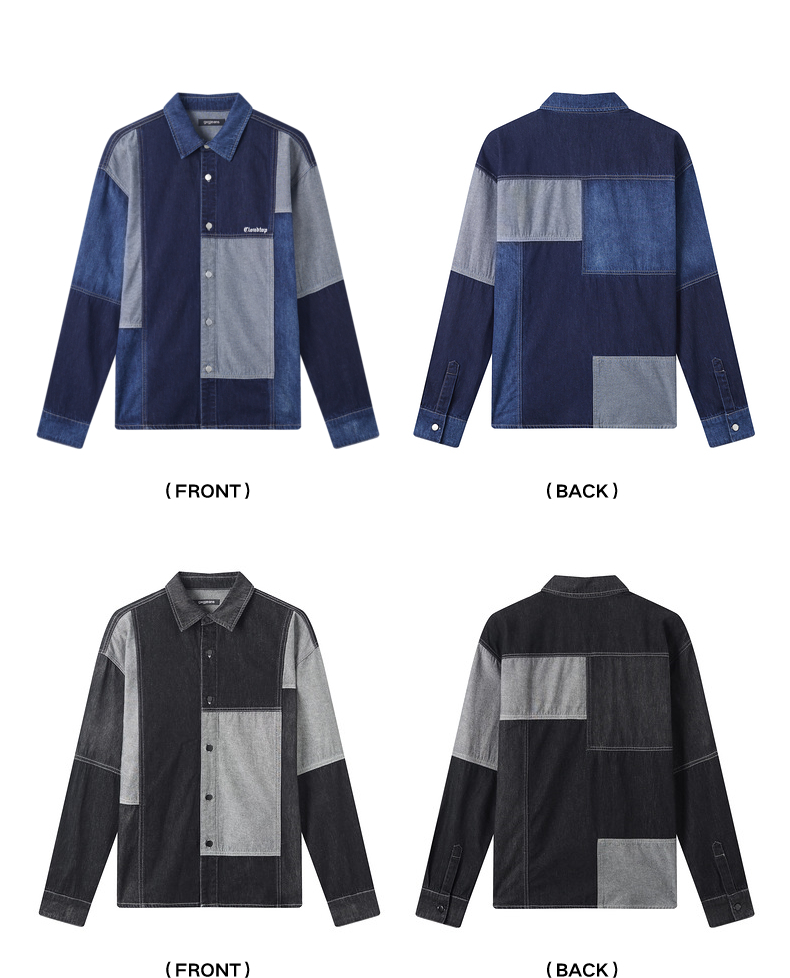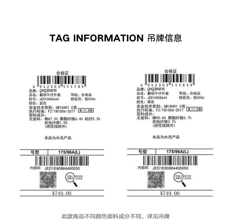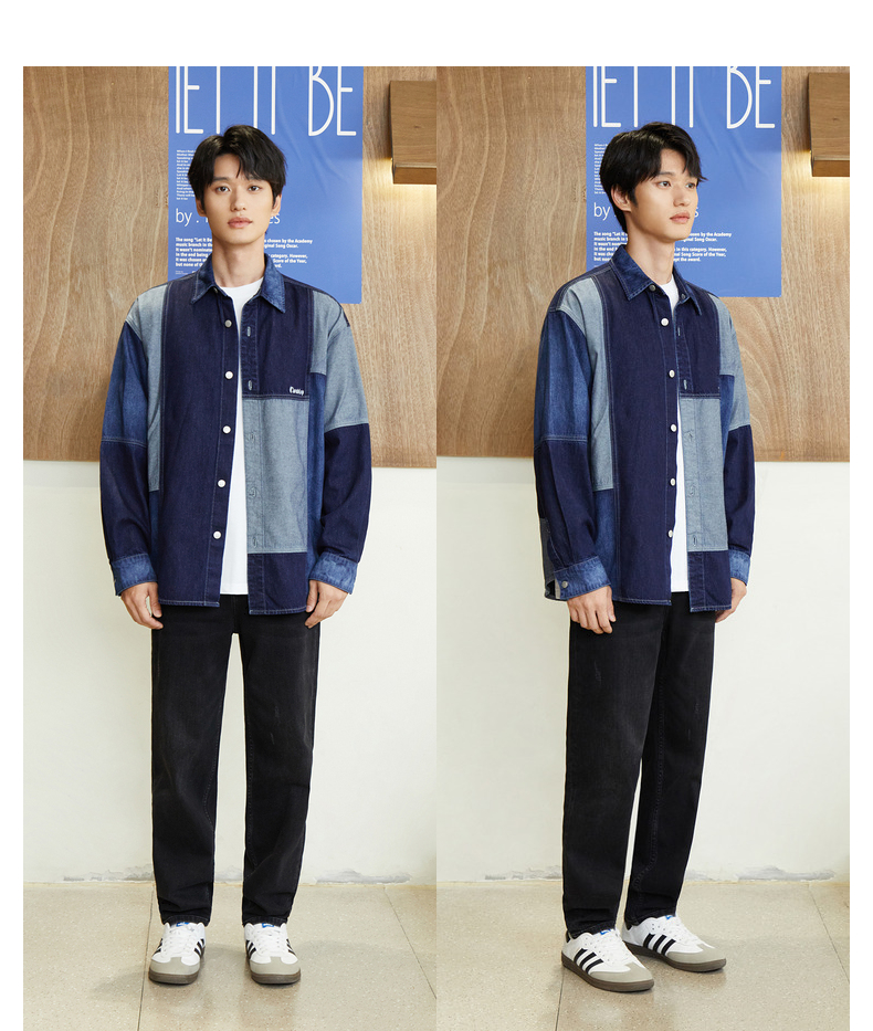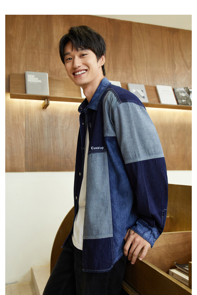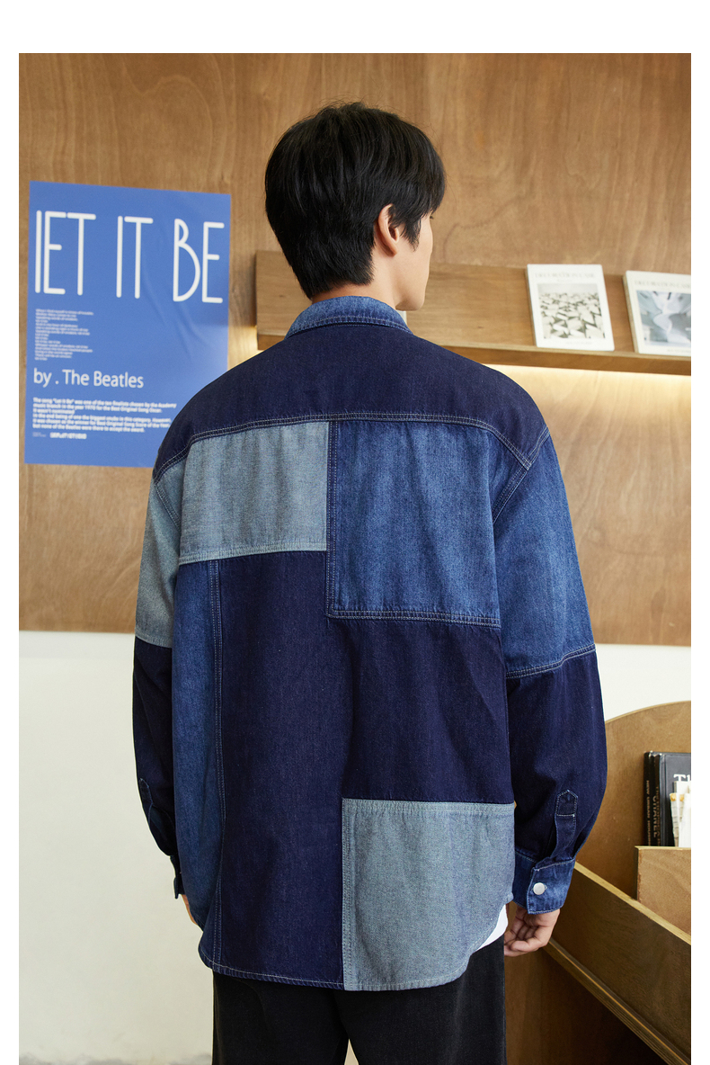 gxgjeans男装 秋季翻领拼接夹克长袖宽松牛仔夹克外套男JED1E808644