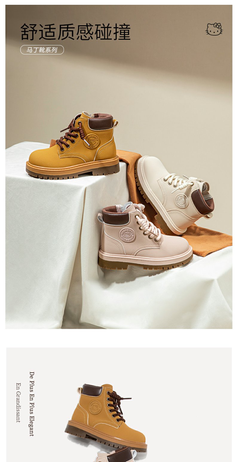 HelloKitty童鞋女童马丁2024新款春秋儿童大黄靴防滑中大童短靴子