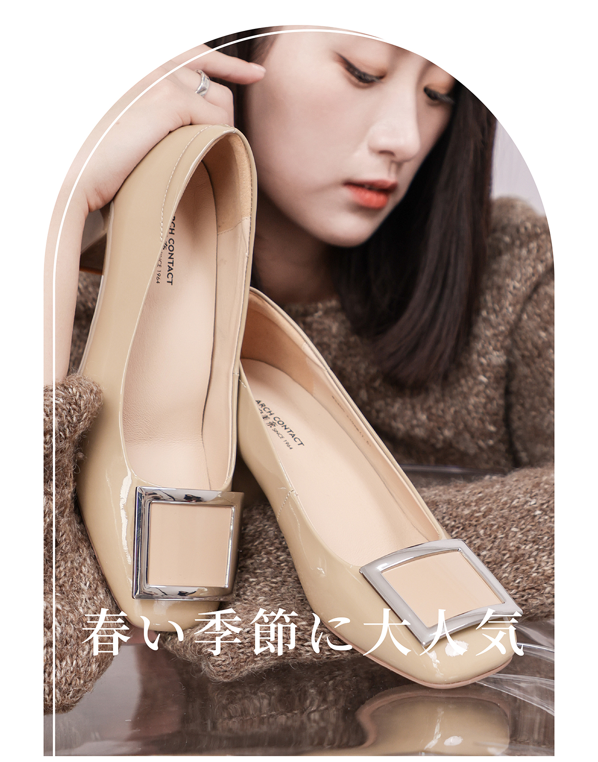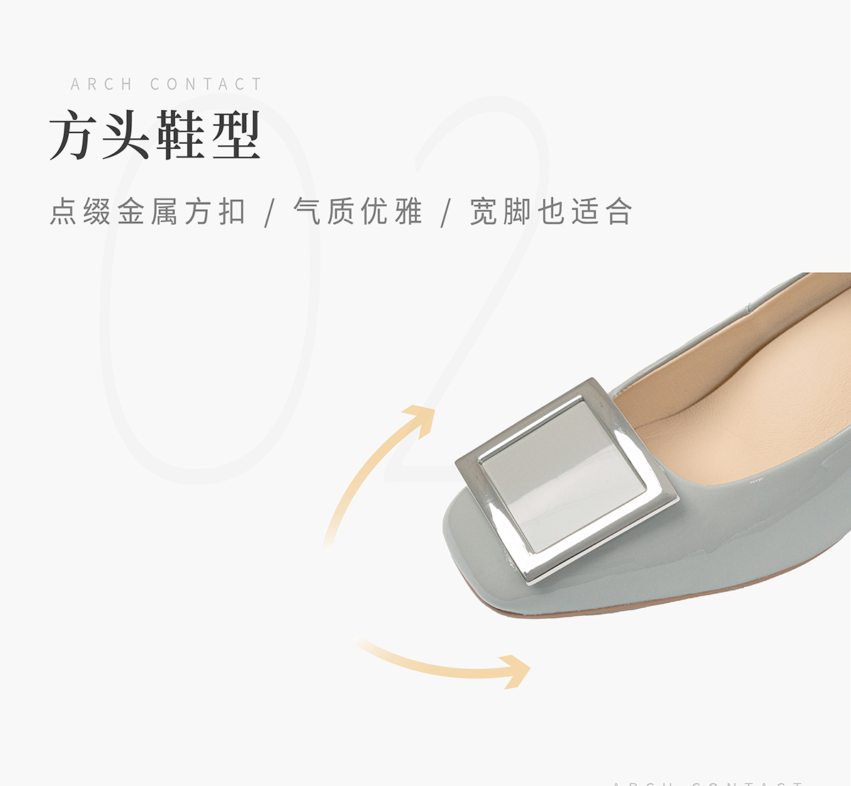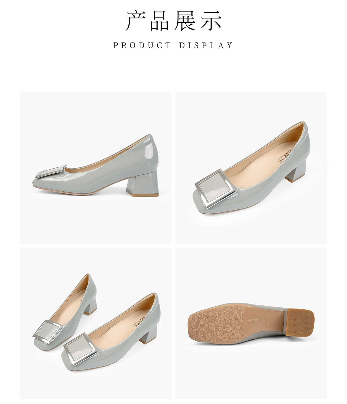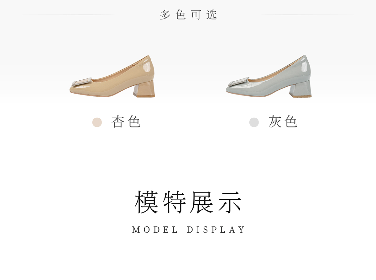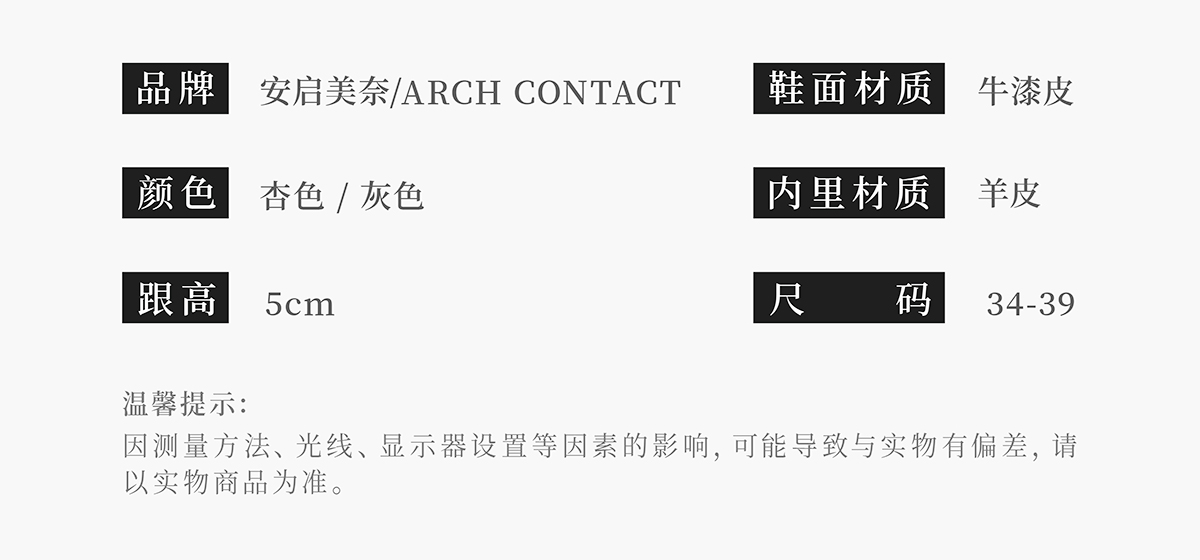 ARCHCONTACT安启美奈方头牛漆皮中跟单鞋52809